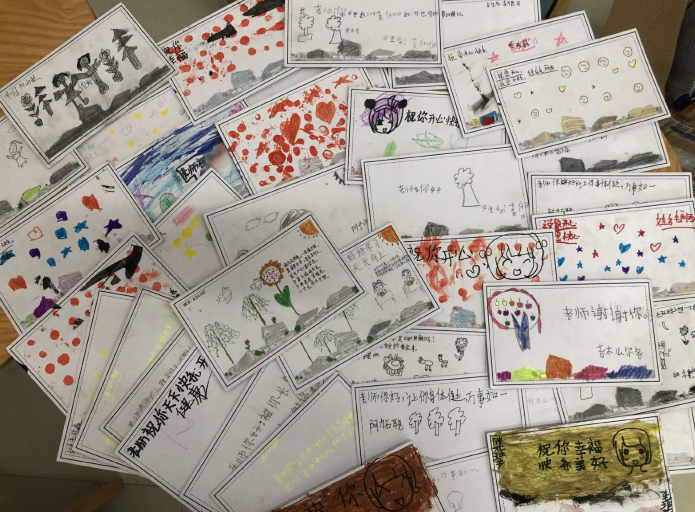 本网讯 2022年1月10日,由通识教育与外国语学院党总支(以下简称“通识学院党总支”)组织发起的“献爱心 播红心”公益捐赠活动得到了各学院党总支和机关党总支的广泛支持,累计捐赠爱心物资达100件。近日,通识学院党总支收到了四川省凉山彝族自治州拖觉镇中心学校孩子们寄回的“感谢明信片”。 (受捐赠的小朋友们绘制的“感谢明信片”)2022年4月4日,在校党委的关心下,通识学院党总支和艺术设计学院党总支联合举办了“爱心回馈”活动,为捐赠物资的各位教职工现场赠送由受捐赠的小朋友们书写了祝福话语的 “感谢明信片”,感谢各位教职工的无私奉献。通识学院党总支书记刘德胜、副书记陈巧巧、艺术设计学院党总支副书记叶克军及教职工代表们参加了本次活动。活动中,捐赠教师代表们拿起写满稚嫩笔迹、充满祝福深情的“感谢明信片”,既喜悦又感动,他们表示,收到的不仅是明信片,还是代表孩子们真情的张张笑脸,更是一份沉甸甸的责任。 (党员教师代表收到“感谢明信片”)刘德胜同志代表通识学院党总支感谢为小朋友们捐赠物资、贡献