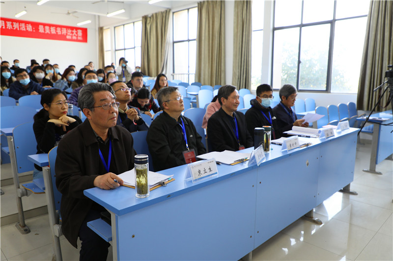为提高我校教师的教学素养,展示广大教师的教学基本功,真实反映教师教学的板书风采,充分发挥板书对课堂教学的服务作用,经各学院初赛评选推荐,共计34位教师进入最美板书评比大赛校级决赛(以下简称“校级决赛”)。作为安徽信息工程学院首届“教学活动月”的重要主题活动之一,3月30日下午,校级决赛在博雅楼(A1)举办,安徽师范大学黄时中教授、詹绪左教授、束立生教授以及学校副校长王彬、校长助理兼教务处处长孙辉担任校级决赛评委。(活动现场)在开场环节,主持人详细介绍了校级决赛的比赛规则及板书要求,随后王彬致辞,他从“一个值得反思的现象”“一条值得践行的途径”“一些值得掌握的标准”三个方面为现场教师阐述板书在教学活动中的重要性,并对参赛教师提出殷切期望:愿所有的参赛选手都能妙笔生花,让我们品尝到最美板书的美妙境界。(王彬致辞)在正式比赛中,教师们依次按照工作人员的指引到指定的教室进行板书,教师们的积极准备、认真设计和用心书写得到了充分展现,每个板书都是教师的艺术品,规范工整的粉笔字、科学合理的板书设计、条