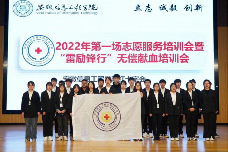 本网讯 为了弘扬无偿献血的奉献精神,保障芜湖市医疗机构临床用血需要和安全,2022年3月1日至4日,由共青团安徽信息工程学院委员会、芜湖市中心血站主办,校红十字会承办的2022年学雷锋志愿服务月系列活动之“雷励锋行·无偿献血”活动在学校体育馆一楼广场成功举办。(图为无偿献血培训会现场合影)活动开展前,校团委联合校红十字会于2月27日晚21:00举办了2022年第一场志愿服务暨无偿献血培训会,为活动的顺利展开提供了有力保障。活动当日,志愿者提前将现场划分为登记区、体检化验区、采血区、观察休息区和奖品发放区五大区域,志愿者引导同学有序进行信息登记、体检、血型测定、静脉采血、观察休息、礼品领取等。现场前来咨询和登记献血的同学们络绎不绝,在献血车内,同学们纷纷挽起袖管,毫不犹豫地献出自己的涓涓热血。此次无偿献血活动也得到了芜湖市电视台的现场采访报道,校团委王灿老师在采访中说道:“此次无偿献血活动的成功举办,充分展示了学校三风建设和第二课堂的实施成效,安信工学子用青春和热血展现出当代大学生的使命担