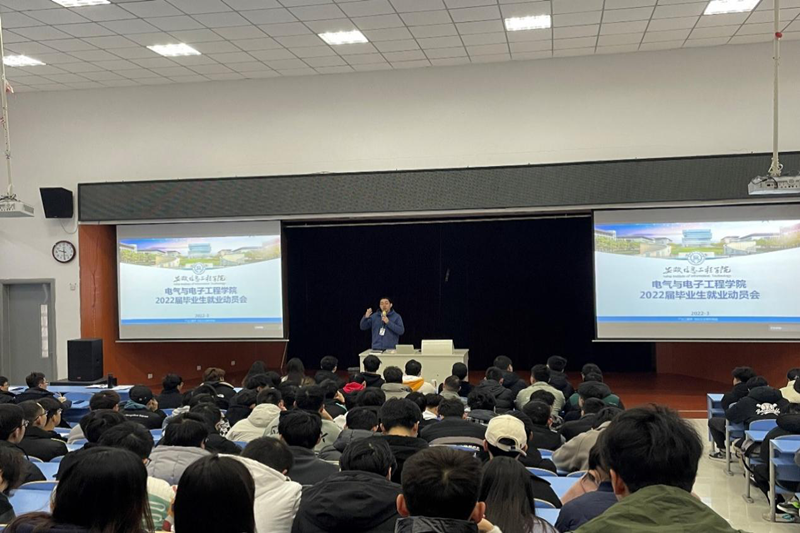 为贯彻落实党中央“稳就业”“保就业”的决策部署,全面推进落实毕业生就业工作,为毕业生提供全面的就业服务,电气与电子工程学院于2022年3月2日召开了2022届毕业生就业动员大会。(图为2022届毕业生就业动员大会)会上,学工秘书曹栋介绍了往届毕业生就业工作基本情况,疫情发生以来电气学院多措并举,通过线上线下多种方式促进毕业生就业创业,确保毕业生高质量就业,成效显著,下一步学院将继续大力推进毕业生就业创业工作,切实降低疫情对毕业生就业的影响。与此同时对当前毕业生就业形势做出总结和预判,对2022届毕业生进行就业动员。指出2022年是多变的一年,困难的一年,也是充满机遇与挑战的一年,面对疫情带来的就业形势的变化与影响,同学们更要积极做好准备,打磨自己的专业技能,充分利用好学院和学校的平台和资源,积极就业,充分对自己的职业和人生进行规划。不畏挑战与困难,鼓励同学们把四年所学知识与技能充分到实践实习中检验与打磨。随后,电气学院副院长陈振做了简要总结,指出毕业班辅导员要切实增强大学生思想政治教育的