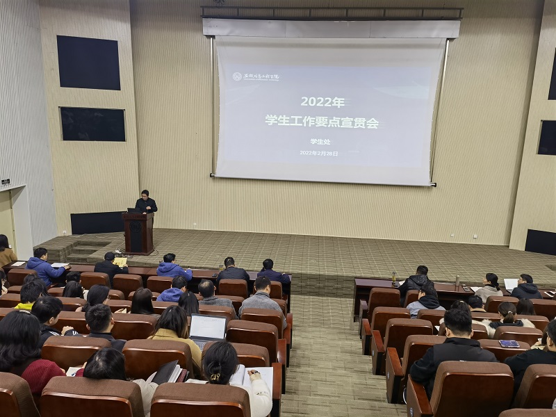 2月28日上午,新学期学生工作要点宣贯会在图书馆一楼报告厅召开,分管学生工作副校长葛付才、学生处处长吴晓、各学院分管学生工作中层、全体学工秘书、辅导员以及学生处全体参加会议。会议由吴晓主持。(图为宣贯会现场)会上,吴晓结合近期发布的《安徽信息工程学院2022年学生工作要点》,就本学期的关键工作和重点工作进行部署,提出在学校迎来合格评估和迎接党的二十大召开的关键时期,全体学生工作者要提高政治站位,继续以学生的成长成才为中心,精准关心学生的学习、生活和心理健康,为学校的建设发展贡献自己的力量。 (图为葛付才讲话)最后,葛付才总结讲话。他强调辅导员要树立工作光荣、责任重大的观念,树立以人为本、因材施教的意识,树立苦干、实干和乐于奉献的意识,在工作中要严于律己、为人师表,做学生的良师益友,当好向导,把纷繁复杂的学生工作做成学问、做成艺术。