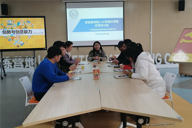 2021年12月15日中午12:30,大学生综合素质与能力培养中心在A32N105胜任力训练营地召开了体验教育融入通识课程改革研讨会。本次会议由素培中心主任陈巧巧主持,通识教育与外国语学院执行院长刘德胜出席了会议,综合素质教研室教研室和体育教研室的相关体验式培训师参加了会议。课程研讨会现场 会上,围绕体验式教育融合通识课程的经验和教训,思考体验式教育融入职业素养课程和思政课程的方向。高级体验式培训师王睿向大家展示了如何利用普通教具进行体验教育改革,现场介绍了使用魔方培养学生的团队意识以及使用汉诺塔训练学生的创新思维的方法。高级体验式培训师王睿教大家“玩”魔方体验“汉诺塔” 12月18日中午,在红杨山汽车体育公园举办了安徽信息工程学院体验教育研究员授聘仪式。 授聘仪式由大学生综合素质与能力培养中心高级培训师洪杰主持,邀请了全校的高级体验式培训师和中级体验式培训师参加了授聘仪式,并颁发了聘书、合影留念。体验教育研究员合影 本次研讨会暨师资团队授聘仪式主要是为了进一步深化教育教