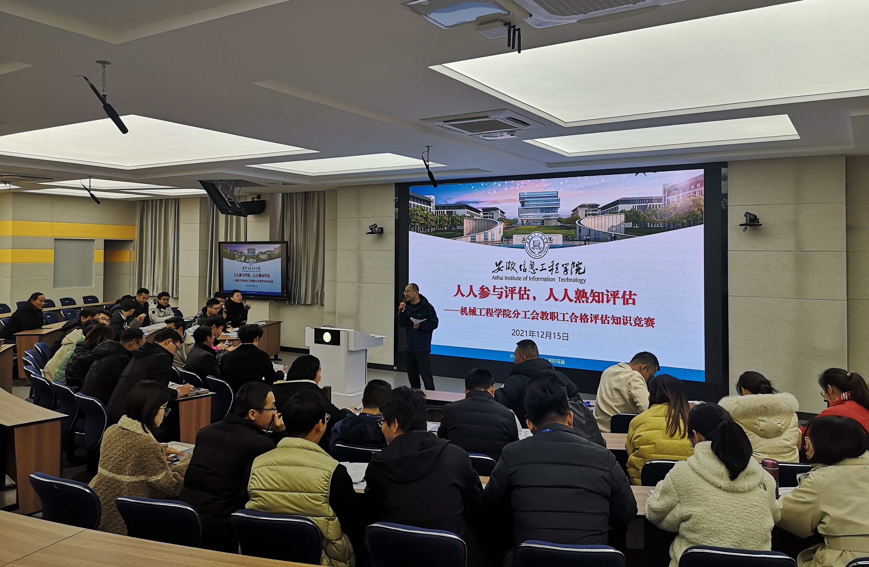 本网讯 根据学校、学院合格评估工作相关要求,营造“人人参与评估,人人熟知评估”的浓厚氛围,进一步促进教职工了解校情校史、熟悉合格评估知识,掌握合格评估的内涵与要求,同时发挥分工会的团结互助和激励作用,12月15日下午,机械工程学院分工会于博学楼W301智慧教室,举办教职工合格评估知识竞赛活动。(机械工程学院分工会“教职工合格评估知识竞赛”)活动采用分组答题和个人抢答两种形式,基础教研组、机制教研组、车辆教研组、机电教研组、材料教研组、实践教学组、学工队伍组等7支队伍共80余名教职工参与本次活动。(竞赛问答现场)(樊钒公布比赛结果)第一个环节为“我出你答”,每队出题人为其他小组各出1题,答题组在规定时间内答题,答对加分,答错则出题组加分。第二个环节为“出题抢答”,每队出题人提出3个问题,其余各组成员限时抢答,答题人答对加分,答错则所在小组扣分。老师们充分发挥团队精神,遇到疑难则运用一切可利用的资源查找最准确的答案,比赛现场气氛热烈融洽,老师们沉浸在活动的乐趣