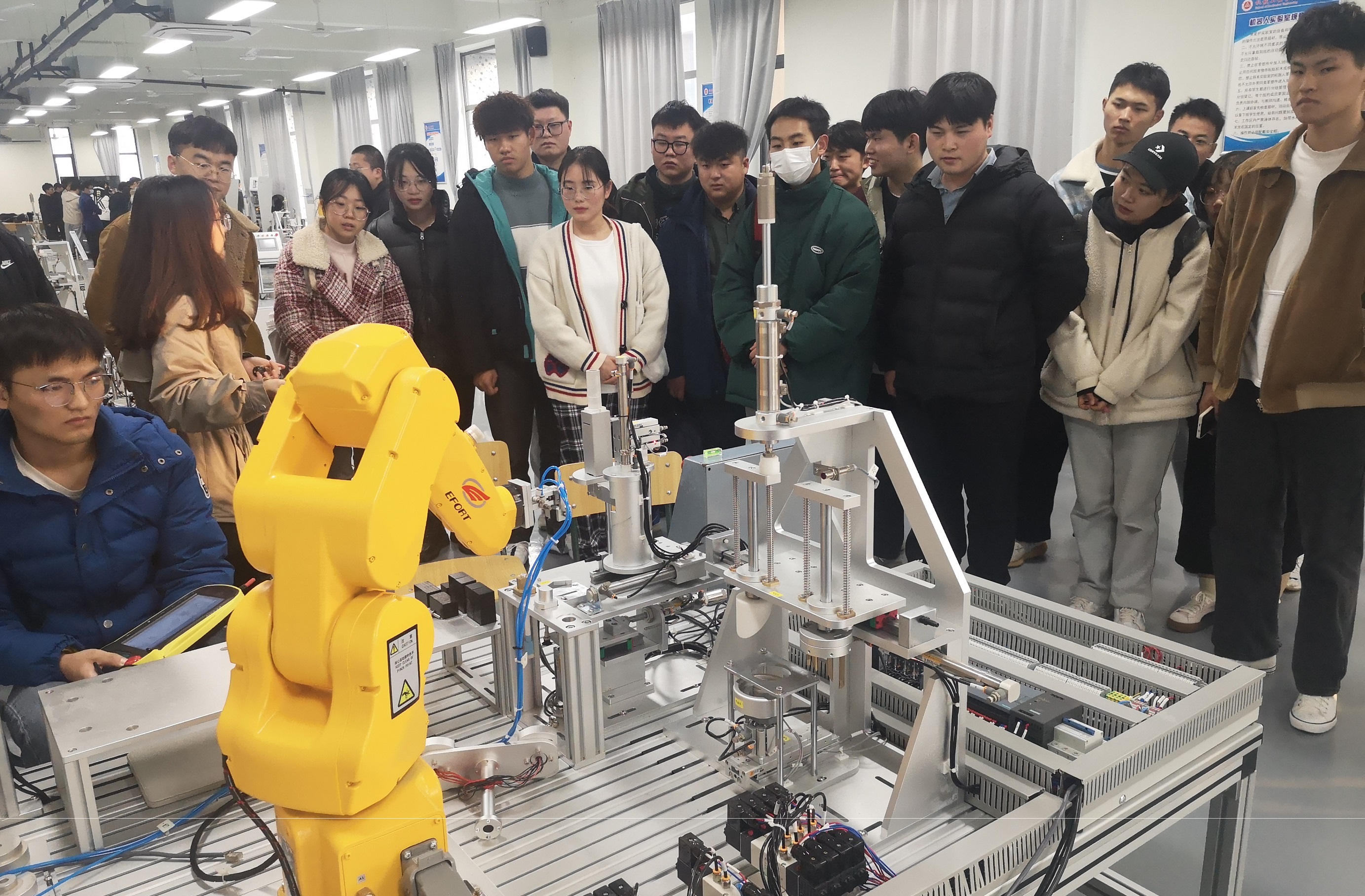 本网讯 为深入学习党的十九届六中全会精神,加强高校学院党支部间的互动交流,提升学院党支部的战斗力。12月7日下午,机械工程学院学生第二党支部与安徽工程大学机械工程学院机制专业学生第一党支部、第二党支部,在安徽工程大学国际工程师学院开展了“结对共建”活动。学院学生第二党支部成员首先参观了安工程机械学院工业机器人、云制造等特色实验室,高度激发了同学们的浓厚学习兴趣,扩宽了知识面,使同学们对智能机器人的原理及构造有了更清晰的认识。随后双方支部成员对党的十九届六中全会精神进行了集体学习,并结合党史学习教育、专业学习生活和职业生涯规划进行交流。安工程机制专业学生第二党支部书记李萨萨作为领学人,精心选择学习资料,带领同学们重点学习《中国共产党第十九届中央委员会第六次全体会议公报》和《中共中央关于党的百年奋斗重大成就和历史经验的决议》,之后双方学生代表展开学习交流。安工程机制专业学生第一党支部书记宋帅、学院机械工程学院党务秘书韩海东、学生第二党支部书记孙奇慧以及双方39名学生党员、积极分子参加活动。活
