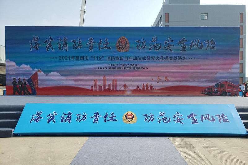 为深入开展习近平总书记为国家综合性消防救援队伍授旗致训词学习宣贯活动,充分展现新时代消防救援队伍新形象,广泛动员社会各界关心消防队伍、关注消防安全、普及消防知识,芜湖市政府于2021年11月3日上午在芜湖苏宁云仓物流园开展2021年芜湖市“119”消防宣传月启动仪式暨灭火救援实战演练活动。我校保卫处王竹、王德鸣参会。(图为会议现场) 会议开始,现场主持人对本次活动进行宣贯并播放芜湖消防救援队伍改制三周年汇报片。旨在强调消防宣传不仅是消防救援机构的职责,更是各单位共同的责任,同时也是确保全市消防安全形势持续稳定的有力保障。 此次“119”消防宣传月活动,是全民防控体系建设的重要举措,更是确保该市消防安全形势持续稳定的有力保障。全市各单位着力提升社会和群众的消防安全意识,为经济社会发展和人民安居乐业创造优质的消防安全环境,在各社会单位和广大人民群众的共同努力下,全市消防安全形势保持持续平稳。活动现场宣读表彰了2020年度消防安全管理先进单位和先进个人,我校荣获消防安全管理先进单位称号
