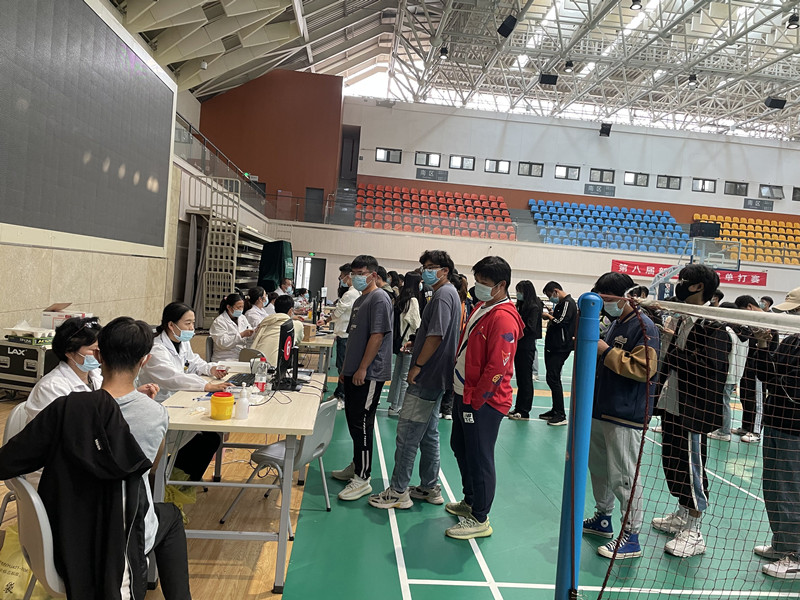 为更有效地预防新冠肺炎,按照区卫健委统一安排,11月3日下午,在学校体育馆三楼,由中铁医院湾沚分院的医务人员为我校符合接种条件的师生进行新冠疫苗第三针“加强针”的接种。为确保本次接种工作顺利完成,校防疫办认真筹备、精心组织,首先与各学院做好对接工作,鼓励动员符合接种条件的师生参加此次集中接种,在此基础上精准统计有意愿接种加强针的师生人数和之前接种的疫苗种类,合理安排接种时间段,保障现场工作高效有序。在接种现场,各项工作有序展开,根据预先安排的时间段各学院的同学们提前来到体育馆门前排队等待。在学生志愿者的引导下,同学们依次进入场馆,领取口罩,核对健康状况和身份信息,进行疫苗注射,并在留观区进行观察。本次共有近811名学生及教职员工接种了加强针疫苗。(图为接种现场)通过新冠疫苗加强针的接种,为筑牢校园安全防线,维护师生身体健康和校园稳定奠定了更为坚实的基础。 (文、图/徐萍 核/邓晨晖 审/汪涛)