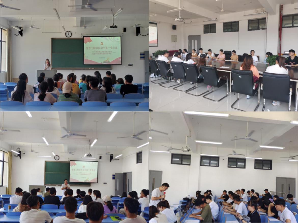 为深入学习贯彻习近平总书记在庆祝中国共产党成立100周年大会上的重要讲话精神,突出实践导向,增强工作成效,切实推动党史学习教育走深走实。8月30日,管理工程学院各学生党支部分别于博学楼N204、N208、求是楼S503教室陆续召开了2021年度第三季度党员大会暨党史学习教育专题组织生活会。(图为管理工程学院各学生党支部召开第三季度党员大会暨党史学习教育组织生活会)首先,各支部书记代表支部委员会报告了第三季度党支部的工作情况,特别是开展党史学习教育情况,通报了党支部委员会检视问题情况,同时剖析了目前存在的问题及不足,以及下一步的工作安排,力促党史学习教育扎实推进,切实将党史学习教育成果转化为推动日常工作高质量发展的澎湃动力。随后,各支部党员围绕党史学习教育从四个方面讲收获提高、谈差距不足,并认真开展批评与自我批评。通过实事求是地检视自身存在的问题,真心实意地相互批评建议,切实达到了相互教育、相互帮助、相互警醒的效果。本次专题组织生活会主题明确、程序规范、组织周密、严肃认真,是一次高标准、高