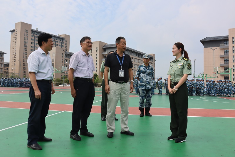 9月10日上午,校长吴敏、副校长葛付才、程业涛在校武装部部长张祥、武装部干事方荣峰的陪同下,来到2021级新生军训现场,看望慰问参训学生、承训教官和辅导员。 校领导一行现场观看了2021级新生队列训练,与参训学生、带训教官、学生辅导员亲切交流,详细了解军训进度、军训人数、军训课目。吴敏校长对本次军训取得的初步成果给予高度评价,希望教官们能严格训练、张弛有度,希望同学们珍惜军训生活的机会,以饱满的精神、昂扬的斗志参加训练。同时叮嘱辅导员在军训过程中要用心关爱学生,并要求相关部门做好保障工作,确保顺利完成2021级军训工作。(图为校领导检查慰问)(图为校领导检查队列训练) 纵使初秋的篮球场烈日炎炎,依然没有影响同学们军训的热情。训练现场,同学们队列整齐、气势昂扬、口号洪亮,充分展示着安信工学子奋发向上的精神风貌。 吴敏校长勉励同学们向军队学习、向军人学习,要用心感悟军训精神,培养吃苦耐劳品质,强健身体、磨练意志,让火热的青春无愧于伟大祖国和新时代。 据悉,安信工2021年新生开学