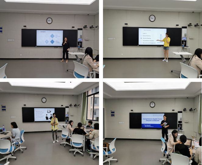 为了落实学校“教学质量人人过关”的总体要求,结合通识教育与外国语学院关于推进“教学质量人人过关”的具体部署,检验教师教育教学基本素养,促进教师改进教学方法,提升英语课程教学的整体质量,实现教师课堂教学技能和课堂教学质量的全面提升,促进年青教师快速成长,顺利迎接合格性评估,英语教研室于8月23日、8月26日、9月3日在A3S302展开了多轮次青年教师教学演示课。图为老师们在认真上课图为其他老师在认真观摩 此次英语教研室进行的多轮次教学演示,由通识教育与外国语学院副院长胡叶婷为组长,程家才、宋志俊两位教授为特别顾问,唐静、陈蕾、张银银、陈娜、孙立为小组成员,全体英语教师全部积极参与,对各自在2021年秋季学期所授课程进行教学演示。图为三位评委老师图为副院长胡叶婷认真评审通过此次多轮次教学演示,全体英语教师收获多多,老师们既看到了其他优秀教师教学上面的特色与亮点,也发现了自身教学过程中存在的不足,相互学习、互相提高,真正实现了课程教学技能的全面提升。后期英语教研室还将继续组织全体英语教师