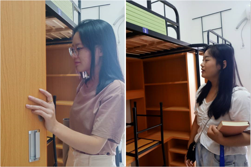 金秋九月,清风徐徐。通识教育与外国语学院迎来了2021级新同学。学院本着“让学生满意,家长放心”的初心,在一系列措施的保障下,确保了迎新工作高效有序的开展。 心系新生,情暖人心:做学生的贴心导员 为更好做好迎新服务与接待工作,让新生到校后住的舒心与放心,9月2日下午,学院2021级新生辅导员杨丽萍与刘荣荣两位老师带领迎新志愿者们一同到A34、A36宿舍楼进行了新生宿舍走访。杨丽萍与刘荣荣老师仔细查看了新生宿舍的桌椅床铺等,测试了宿舍的用水用电情况,接着,两位老师又来到了新生宿舍的公用区域,对洗衣机、热水供应机等设施进行了查验。杨老师、刘老师表示,对于大学生们而言,宿舍就是另外一个家,良好的住宿环境既能为同学们带来身心舒适感,也有助于改善同学们的不良习惯。在新生入校后,老师们会继续加强宿舍走访,以期拉近师生之间的距离,帮助新生尽快消除不适,更好开启大学生活。(两位老师在宿舍走访查看) 新生报到,展新风貌:新生有话说 9月3日上午,迎新第一天,微凉的天气仍然挡不住校园沸腾的气息,