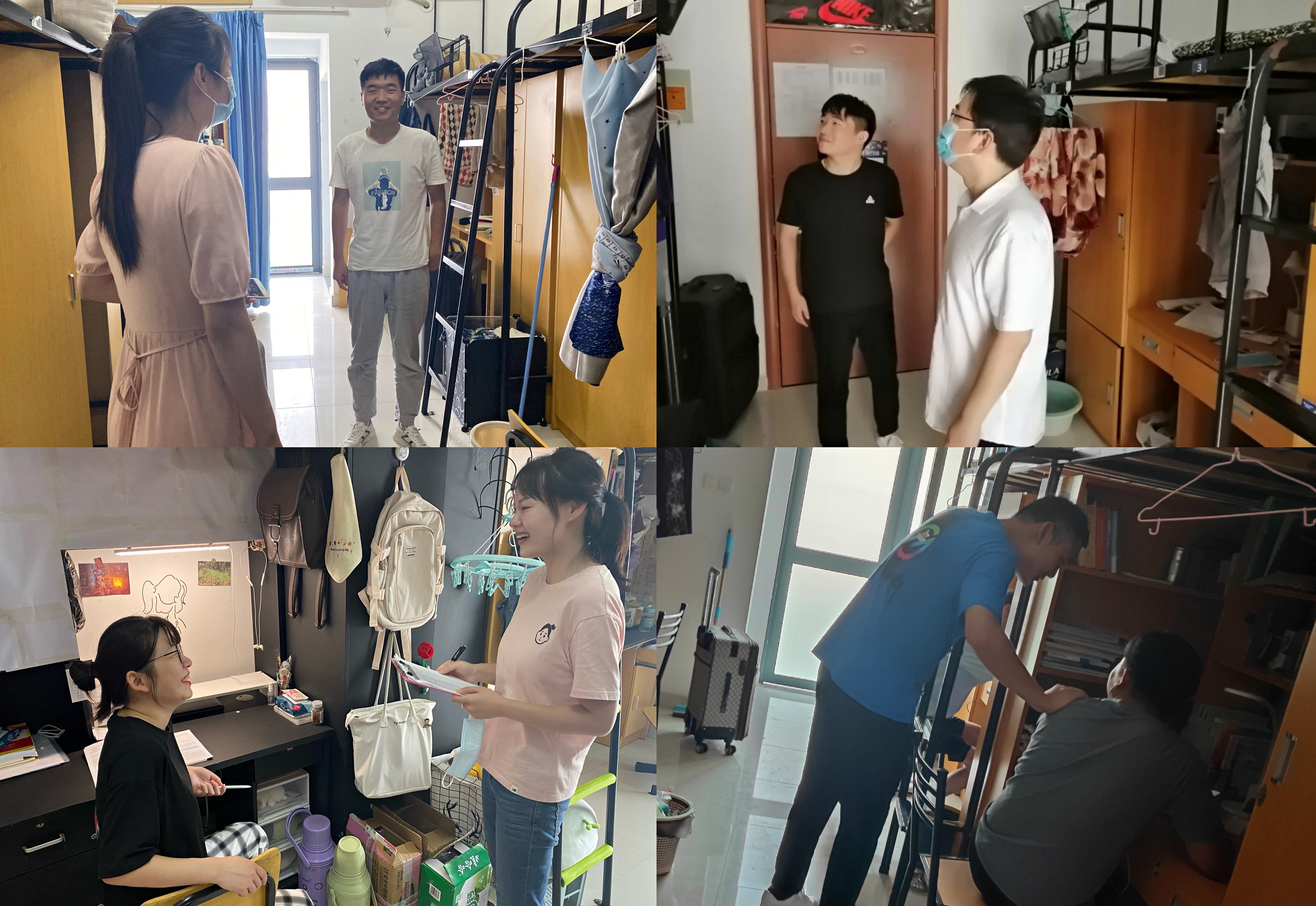 本网讯 为保障2021年秋季学期学生顺利返校开学,机械工程学院根据学校返校的相关通知要求,认真落实、落细疫情防控措施,积极谋划,多措并举,确保开学返校各项工作顺利进行。8月28日至29日,学院学生相继报到,广大学子以良好的精神面貌开启了新学期。信息摸排有精度。应校防疫办要求,学生返校前要提供48小时核酸检测阴性证明,保持近14天“今日校园”健康打卡,并提交14天运动轨迹及皖事通安康码截图,学院各年级辅导员力求精准摸排学生信息,逐一排查不符合返校规定的学生,并对其进行沟通关怀,确保校园疫情防控做到位,构筑学院疫情防控严密防线。(辅导员下宿舍看望学生)人文关怀有温度。学院全体辅导员深入学生宿舍,了解学生开学状态,鼓励大家明确新学期目标并有所进步,同时对宿舍环境和安全措施保障等问题进行了全面检查,提醒学生保持宿舍通风,并对发现的卫生问题和安全隐患与学生交流并督促其及时整改。督促学生有力度。学生返校后,各带班辅导员组织学生领取教材,并通知学生在教务系统查看课表,了解本学期的课程安排。同时,督促开