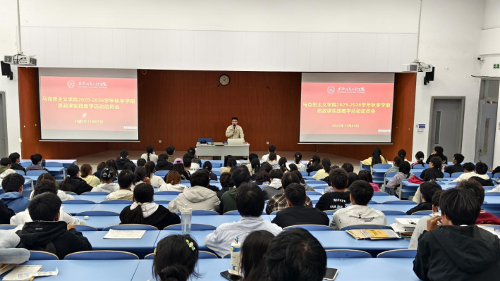 本网讯 为深入学习贯彻党的二十届四中全会精神,落实思政课立德树人根本任务,11月8日—9日,马克思主义学院结合秋季学期《马克思主义基本原理》课程实践教学目标,组织师生赴浙江义乌开展“品真理甘甜,铸信仰之基;观发展伟力,启时代新程”主题实践教学活动。马克思主义学院思政课教师代表、大二各行政班级思政委员等学生代表、学生社团代表等共96人参加了本次活动,在实地走访中感悟真理力量,在实践调研中见证发展奇迹。精心部署明方向 动员聚力启新程11月5日,学院在A1W101召开了2025-2026学年秋季学期思政课实践教学活动动员大会。马克思主义学院常务副院长胡安全、院长助理任晨晨、马克思主义基本原理课程组负责人韩燕玉、思想道德与法治课程组负责人汪菁及学生代表出席。(图为动员会现场)会上,汪菁围绕个人行为规范、团队协作要求等内容,明确实践活动的纪律准则;韩燕玉详细解读行程安排,强调“安全实践,知行合一”核心原则,重申“不脱队、不冒险、不隐瞒、不冲动”的“四不”要求,深入阐释安全保障与团队协作的重要性。胡