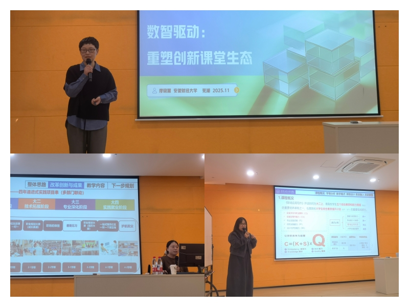 本网讯 为响应教学改革前沿趋势,紧扣学科科研热点,助力教师教学能力与科研水平双提升,11月12日下午,紫云英教科研工作坊首场活动在紫云英创新创业学院举行。本次活动以 “课程设计与示范课教学” 为主题,特邀安徽财经大学副教授、“安徽最美教师” 廖晓慧担任主讲嘉宾。紫云英创新创业学院执行院长李菼出席,学院全体教师参与学习。活动由副院长陈巧巧主持。李菼在开场发言中强调,教科研是学院内涵式发展的核心动力,而教科研工作坊是落实教学改革、培育优质教学成果的重要载体。他希望全体教师以此次活动为契机,深耕课程建设、锤炼教学本领,切实提升教学创新能力。作为国家级一流本科课程主讲人,廖晓慧深耕教学一线多年,拥有丰富的课程建设与教学实践经验。她围绕课程设计的核心逻辑、教学目标拆解、教学内容优化、评价体系构建等关键环节,通过自身主持质量工程项目、主编数字教材的实践经历,结合省级教学成果奖一等奖、首届全国高校教师教学创新大赛一等奖的获奖经验,分享了课程设计中的创新思路与实操技巧,通过示范课教学展示,直观呈现了优质