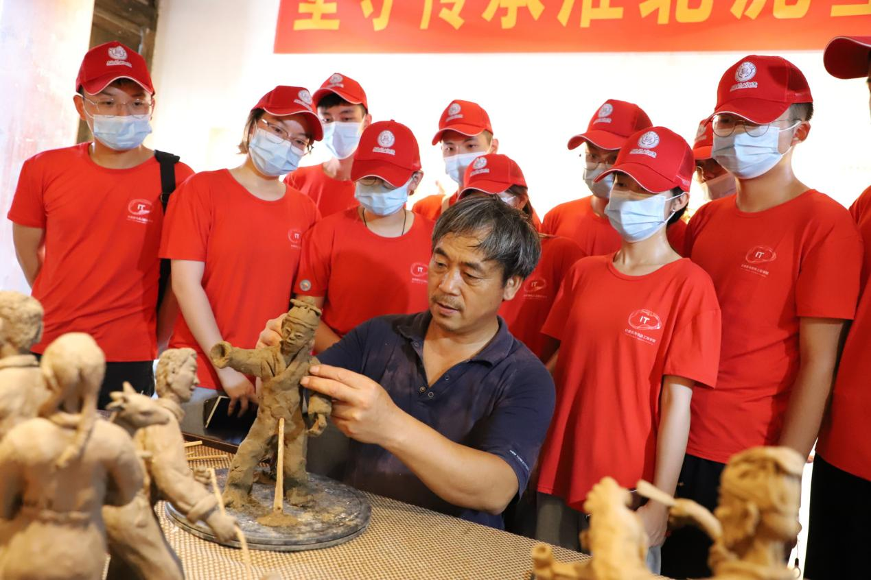 文化遗产是一个民族古老的生命记忆和活态的文化基因,体现着一个民族的智慧和精神。为让同学们更加了解优秀文化,让新时代的大学生走进传统文化,感受悠久的历史和灿烂的古都文明,为中华民族留下的丰富的文化传统和文化精神。2021年8月12日,安徽信息工程学院计算机学院“科技支农-助力乡村振兴”实践团队在濉溪县内开展了本次非遗文化调研活动,记录文化故事,感悟文化魅力,传承文化精神。上午8时,本次非遗文化调研活动正式开始。团队成员在县团委工作人员暨全国优秀共青团员郭子文同志的带领下,前往濉溪文化古街——凝曦门,并在此开展非遗文化调研活动。炎热的太阳并未消磨队员们的热情,踏过青石板路,穿过热闹长街,队员们参观了古城旧影馆,也依次拜访了非遗文化手工泥塑传承者李建东老师、非遗文化剪纸传承者韩学敏老师与非遗文化夏派唢呐传承者周志民老师。拿上泥,十指翻飞,不消片刻,一个栩栩如生的泥人便出现在李老师的手中,或是历史人物的展示,或是古法技艺的介绍,构思之精巧,精湛之技艺,无不令人叹为观止;一张彩纸,一把剪刀,一双巧