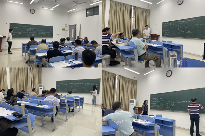 为落实学校关于“教学质量,人人过关”的有关要求,进一步加强数学教研室教师队伍建设,检验教师教育教学基本素养,提高教师队伍整体水平,促进教师改进教学方法,实现教师课堂教学技能和课堂教学质量的全面提升,按照学院暑期工作要求,经通识教育与外国语学院数学教研室会议研究决定,于2021年7月23日,在博雅楼A1N303组织开展新进年轻教师“磨课”活动,数学教研室全体教师参加了此次活动。(图为部分教师授课现场) 本次活动由刘树德院长担任评委组组长,评委组成员由张明望教授、宋卫东教授、朱水源教授、宋寿柏教授和宋来忠教授组成;授课教师为祝德春、钱欢、刘晴晴、吕升日、李冠戬、张恒、张静、葛靖八位新进年轻教师。(教授们针对教学方面相互交流) 活动中刘院长和各位教授针对教学设计、教学内容、教学组织、课件设计、教态等方面对每一位老师的授课进行了点评指导。听课组的老师们希望年轻教师向学院教学经验丰富的老师虚心请教,多多听课认真备课,强化教学基本功,站稳讲台。 通识教育与外国语学院历年来非常关注青年教师的