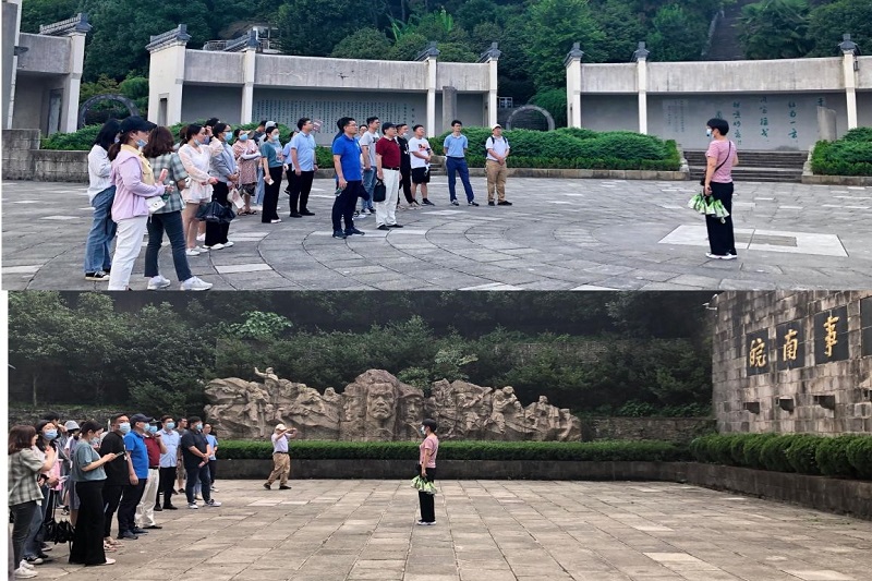 为庆祝中国共产党成立100周年,丰富管理工程学院教职工的文化生活,使新入职教师更快融入集体,7月23日至24日,由管理工程学院党总支牵头、院分工会组织四十余名教职工参与的“皖南红色之旅”党建带团建活动顺利开展。本次党建团建活动为期两日,旨在学习革命先烈的红色精神,感受皖南地区自然风光的魅力,增强教职工团队的凝聚力,提升教职工的归属感与幸福感。活动第一站首先来到位于宣城市泾县的皖南事变烈士陵园。在烈士陵园解说员的带领下,大家怀着崇敬的心情,先后参观了纪念碑、主题广场、主碑纪念广场、无名英雄烈士墓,通过一块块题词的碑文、一件件珍贵的文物、一段段感人的事迹,全面形象地再现了当年波澜壮阔的革命战争场景,以及新四军在极端恶劣的环境下艰苦奋斗、不屈不挠的抗争历史,昭示着共产党人对理想的不懈追求、对事业的无限忠诚。(图为教职工认真聆听讲解员的介绍)(图为教职工于皖南事变烈士陵园入园前的合影)告别了城市的喧嚣,放下工作的压力,第二站,教职工团队来到了位于黄山市黄山区乌石乡境内享有“黄山第一寨”的杨家寨景
