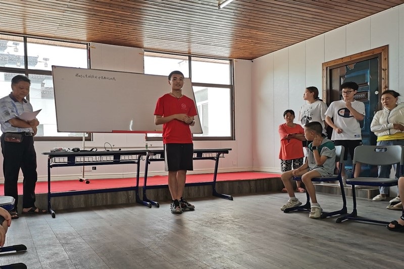 为积极推进“新四史”新时代教育跟紧党中央对于当代大学生素质的高要求培养计划,管理工程学院财管2001团支部成员组成一支在指导教师谢欢与团总支的帮助下于2021年7月15日下午到达安徽省宣城市泾县开展红色“三下乡”暑期社会实践活动。宣城市泾县是全国知名的红色知识文化县县城,除去历史悠久的红色经典需要我们学习之外,更有许许多多的乡村留守儿童暑期时间需要青年大学生给予帮助。“萌芽义教”小分队在宣城市泾县蔡村镇团委、党委的帮助下,于2021年7月16日到达蔡村镇政府进行开班仪式及授牌仪式。在儿童房服务站站长、蔡村镇镇团委书记、“萌芽义教”小分队代表发言人等各开站代表发言过后,安徽省宣城市泾县蔡村镇“阳光儿童”儿童服务站正式启动开课,并于当日下午13时30分开始了儿童服务站的第一堂课。(图为团队代表开站式讲话)“萌芽义教”小分队此次的教学活动采用先学后教再考的“三明治”式教学方法,在宣城泾县当地的各大红色景点以及历史学校先进行学习,通过知识消化,再将知识过滤细分,除了开展红色知识教育之外,还穿插进