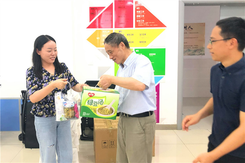 炎炎夏日送清凉,滴滴关怀暖人心。为深入贯彻落实“我为群众办实事”实践活动,切实做好教职工防暑降温工作,充分体现学校对广大一线教职工的关心与关爱,7月26日校工会组织开展教职工夏季“送清凉”活动,由校工会主席宋小秋,副主席糜澜、樊钒带领工会委员及各二级学院领导们慰问辛勤工作的一线教职工,将精心准备的防暑降温物品送至他们手中,在炎炎夏日里送上丝丝清凉和点滴关怀。“送清凉”活动是校工会服务教职工、关心爱护教职工的一项重要活动。校工会对开展“送清凉”活动高度重视,提前谋划,强调细节,确保落实,将“娘家人”的关心送到身边,送进心里,并对教职工们不畏酷暑、坚守岗位、默默奉献的精神表示感谢,叮嘱大家在做好工作的同时一定要保重身体,注意做好防暑降温工作,保证安全度夏。关爱的话语,精心的礼物,让大家备受感动和鼓舞,进一步增强了教职工的凝聚力、向心力,极大地激发了教职工的工作热情。他们表示,将把学校的关怀转化为工作的动力,坚守岗位、尽职尽责,以更加饱满的热情投身于学校建设与发展中,为学校各项事业的开展尤其是