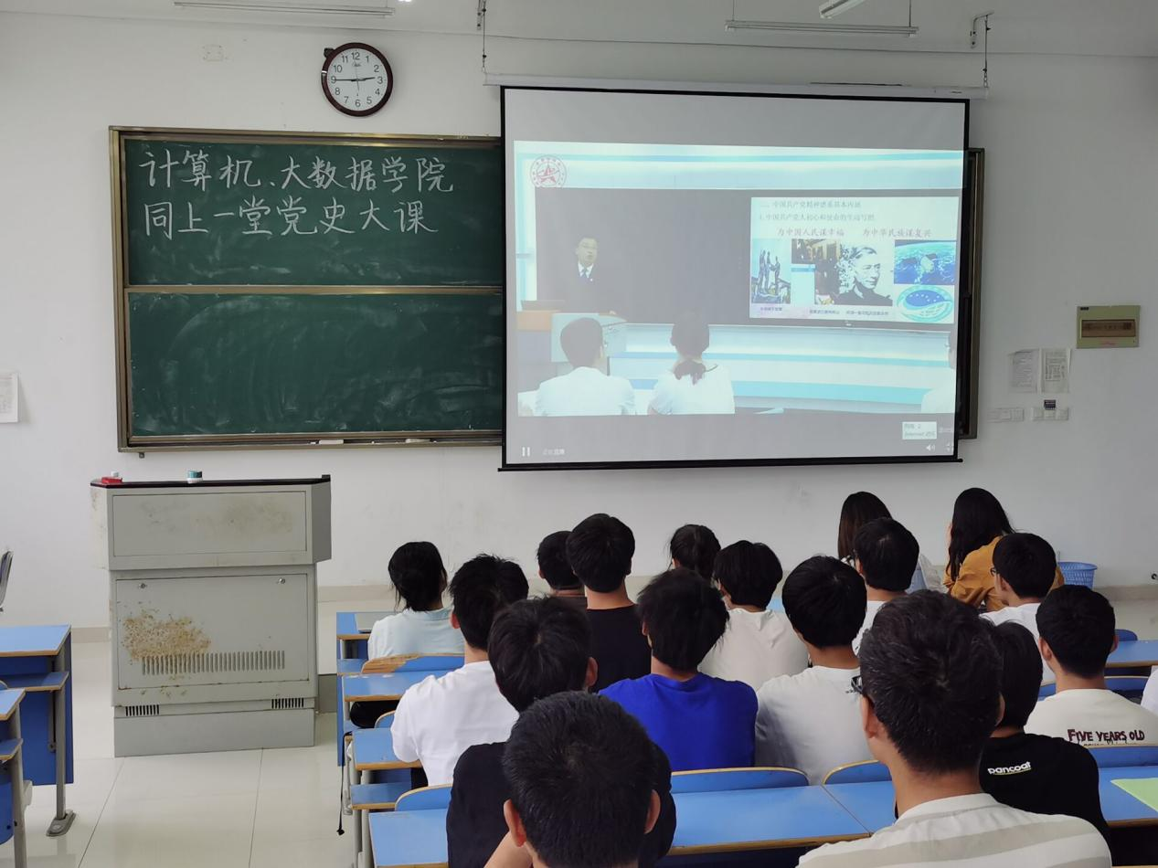 本网讯 为深入学习贯彻习近平总书记在学校思想政治理论课教师座谈会上的重要讲话精神,特别是“大思政课”重要指示精神,全面落实习近平总书记在党史学习教育动员大会上的重要讲话精神和《中共中央关于在全党开展党史学习教育的通知》的部署安排,6月18日下午,在新芜校区博文楼N304教室,计算机(大数据)学院学生一同观看“同上一堂‘党史’大课”。“同上一堂‘党史’大课”由安徽大学马克思主义学院李明老师,皖西学院吴学东老师,蚌埠医学院李乐老师,安徽科技学院赵仁青老师主讲。围绕“中国共产党精神”“大别山精神”“新四军的精神”“渡江精神”“井冈山精神”五个主题回顾百年党史,回忆百年发展,见证中国力量、中国奇迹。(图为新芜师生正在认真观看党史大课)大数据学院的同学表示,在听完“同上一堂党史大课”之后,有了很深的感触。当代青年大多没有经历过战争和贫苦,没有亲身体验过国家从站起来到富起来的巨大变化,我们只有通过学习“党史”,才能了解中国共产党走过的光辉岁月和艰苦历程,才能弄清楚我们从哪里来、到那里去。通过学习“党