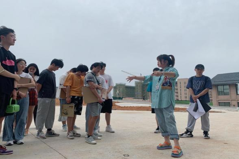 为促进在校学生有机地将专业知识在工程实践中合理运用,艺术设计学院环境设计1901班于5月28日在校园内进行关于校园景观建筑的调研考察。本次的校内调研由张慧老师带领,从身边校园出发,通过实地考察,大量创作素材,积累实践经验以及课程作品创作奠定基础,理论联系实践,推动了景观建筑设计课程的进程。 在张慧老师的带领下,队伍从图书馆开始出发,通过对图书馆的基本建筑结构以及对于学校生活的重要作用进行讲解,使得同学们对于布局空间、外立面、周边环境等重点有了足够的了解。穿过夏园来到体育馆,灰色建筑安静的坐落在校园一角,特有的构造以及与众不同的材料让同学们对景观建筑有了更深的了解。最后对坐落在如意湖边上的艺术楼进行参观,步入楼中,温暖的阳光从穹顶洒落,明亮而又独特的教室给人全新的感觉。因为施工尚未结束,进入艺术楼时由实训教学中心副主任江鹏老师以及上海堤旁树科技有限公司两位高级工程师祖海瑞和李攀老师针对各楼层结构构造、功能分区以及建筑材料、施工工艺进行了详细介绍。最后,张慧老师总结了今天的调研实践情况