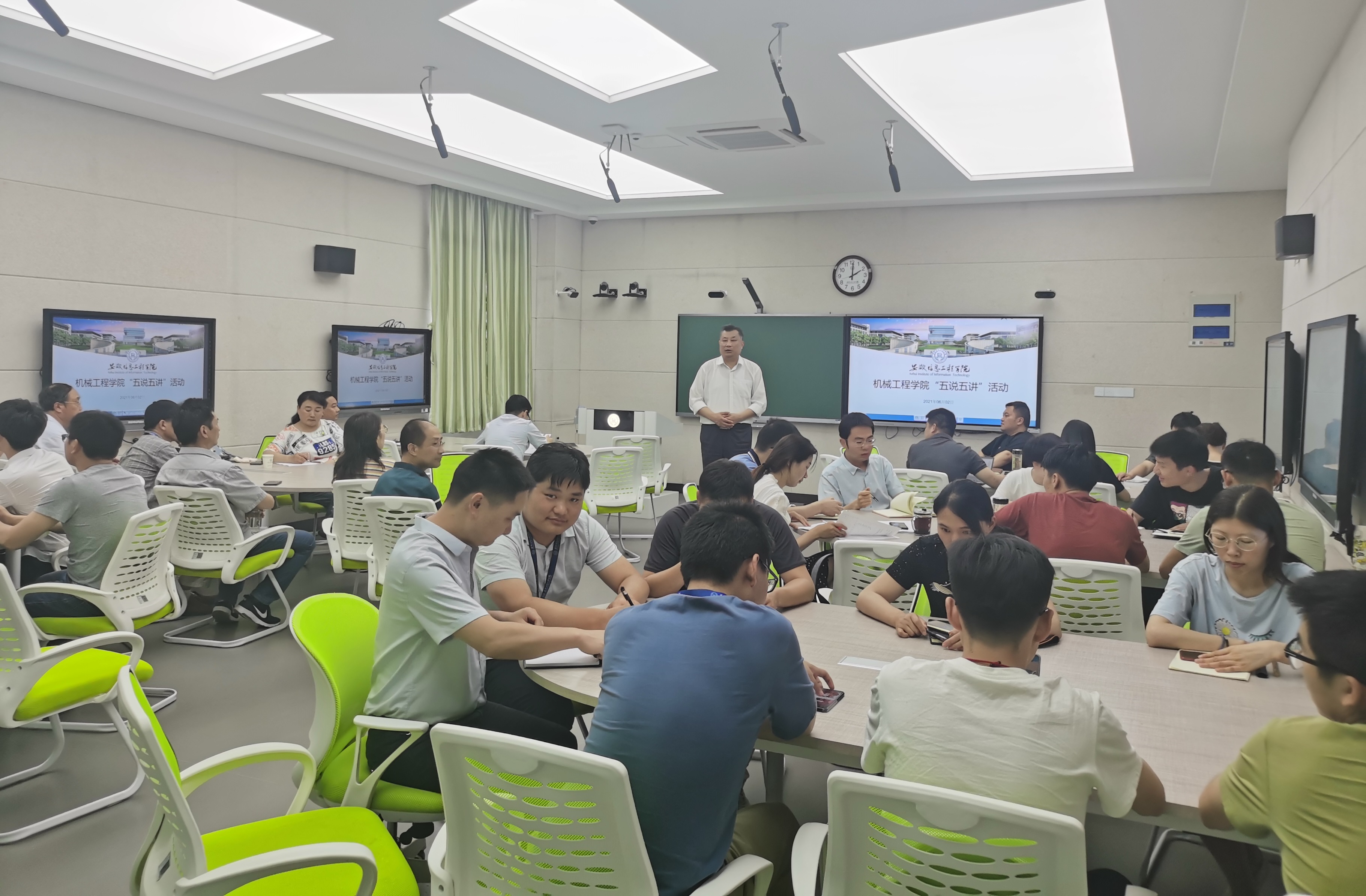 本网讯 6月2日下午,机械工程学院在博学楼N301智慧教室开展院长说学院、教学院长说教学、专业负责人说专业活动。学院全体教职工参加了本次活动,活动由执行院长柴阜桐主持。首先,执行院长柴阜桐向与会教师介绍了目前评估工作进展情况以及后续工作安排,并强调了“五说五讲”活动在评估中占据的重要地位。随后,柴院长从学院概况及定位、办学举措、特色培育、发展规划等方面向与会教师详细讲解学院情况。学院教师听了柴院长的汇报,对学院的整体情况有了更进一步的了解。分管教学院长方传智从学院师资队伍结构、专业结构与人才培养模式、课程与教学、企业实习与毕业设计、管理及质量保障、下一阶段发展思路等方面阐述学院教学情况。学院各专业负责人分别从专业概况、培养目标与课程建设、师资队伍、教学条件、教学成果、专业特色等方面介绍专业发展情况。最后,柴阜桐针对本次活动进行总结,希望各位教师会后进一步熟悉学院的人才培养模式、教学改革、特色培育等内容,积极主动参与后续的说课、说管理活动,全力以赴打好合格评估攻坚战。(文/苗思忠 图/苗思