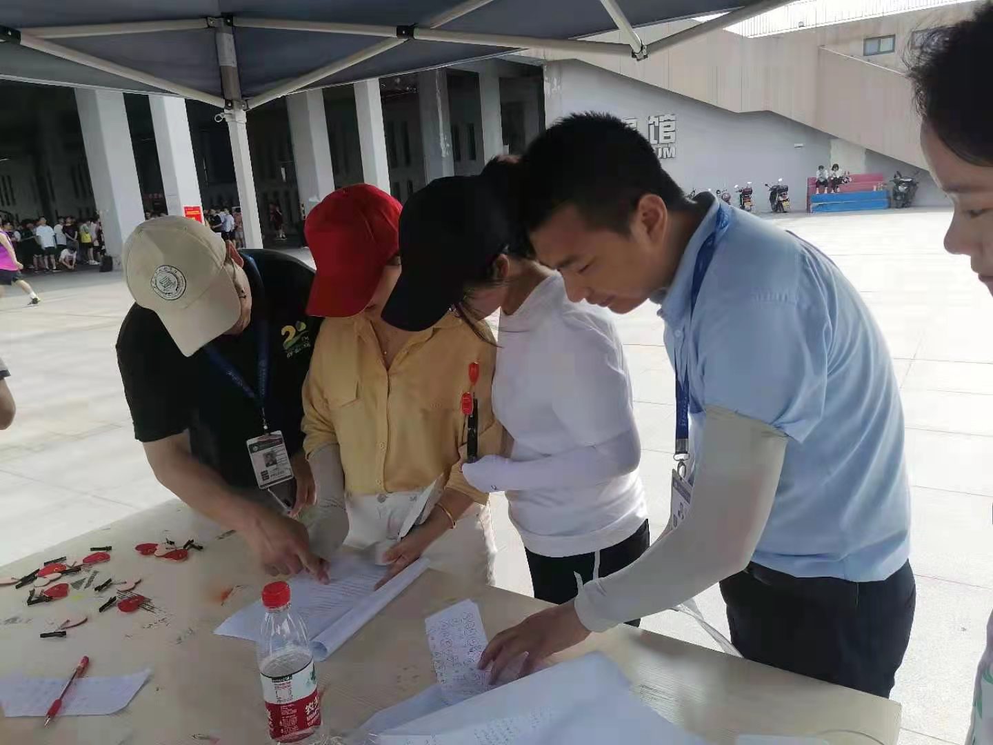 为隆重庆祝建党100周年,弘扬爱国精神,展现安信工学子的精神面貌,同时为进一步推动课外锻炼健康的校园氛围,丰富我校师生课余活动,由我校通识教育与外国语学院体育教研室主办的第一届校园迷你马拉松比赛于2021年6月2日顺利举行。全校各个学院积极响应本次活动,同学们都纷纷踊跃报名,在这个初夏的时节里,挥洒青春,热血开跑。 本次比赛路线以体育馆夹层广场为起点,绕A3、A4教学楼,学校东门,明志路教学楼,如意湖环路,崇文路,最后回到体育馆夹层广场,共完成4圈6公里的路程。 下午1点半,微风和煦,阳光正好,同学们聚集在体育馆广场前。在马拉松比赛前主办方准备了党史答题环节,大家踊跃答题,展示了党史学习教育成果。通过组织党史竞赛,让同学们从全方位的了解共产党员,了解共产党员究竟为祖国的建设所做的贡献,加深了爱国主义情感的教育,培养大家团结合作的精神,责任感,彼此之间扬长避短,相互学习。(党史答题现场) 随着党史答题结束,同学们回到比赛场上,发令员一声发令下,比赛组的学生们出发了。与短跑不同,马