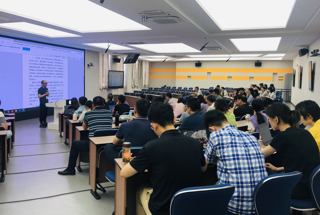 为更好地迎接合格评估,使学院教职工深度了解学院概况、人才培养等相关内容,6月2日下午,计算机与软件工程(大数据与人工智能)学院院长说学院、教学院长说教学、专业负责人说专业宣讲活动在东一104智慧教室如期举行。执行院长周鸣争、副院长戴平、副院长万家山、院长助理夏林以及全体教职工参加了本次活动,活动由周鸣争院长主持。(图为周鸣争主持五说五讲活动)首先,周鸣争向全体教职工说明了学院开展“五说五讲”工作的重要性,随后,周鸣争院长从学院概况和特色、具体举措及成效、下一步发展思路三个部分进行介绍,并分别从人才培养、师资队伍、专业建设、学风建设、党团建设、团队建设、办学成效等相关内容阐述了具体做法,让教师们对学院整体情况有深入的认识。(图为院长说学院)紧接着,由分管教学院长万家山开展说教学活动,分别从人才培养模式、师资队伍、专业建设、课程建设、日常教学管理与质量保障、企业实习与毕业设计进行展开。(图为教学院长说教学)接下来,由各专业负责人进行专业介绍,由王啸楠、朱洪军、伍岳、王雪梅、高超开展说专业活动