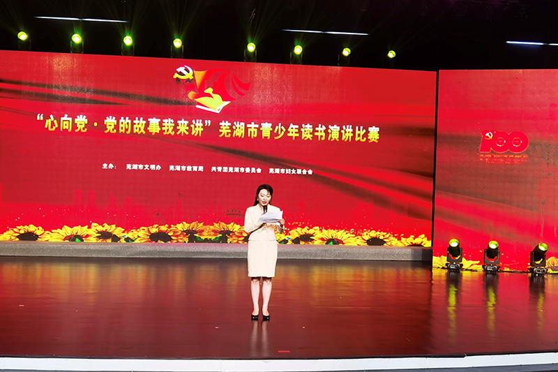 本网讯 2021年5月26日,由芜湖市文明办、芜湖市教育局、共青团芜湖市委员会与芜湖市妇女联合会主办的“心向党·党的故事我来讲”芜湖市青少年读书演讲比赛在芜湖广播电视中心举行,来自全市各高校的优秀选手积极参赛。(图为主持人做比赛开场发言) 比赛中,参赛选手结合自身与身边人的经历,用鲜活的语言,生动的事例,讲述了一个又一个积极、感人的故事,展现了当代青年人与祖国共成长,与时代齐奋进的良好风貌。(图为我校选手张丽丽)此次演讲比赛是在中国共产党成立100周年之际举行的,旨在贯彻落实习近平总书记在党史学习教育动员大会上提出的“抓好青少年学习教育,着力讲好党的故事、革命的故事、英雄的故事,厚植爱党、爱国、爱社会主义的情感,让红色基因、革命薪火代代传承”的重要指示精神,并培育和践行社会主义核心价值观,大力弘扬中华民族优秀文化,进一步丰富全市人民的精神文化生活,展示芜湖青少年思想道德建设成果。我校积极响应,并推选张丽丽与褚丽两名同学代表安徽信息工程学院参加了此次赛事,经过激烈角逐,来自我校大数据与人工