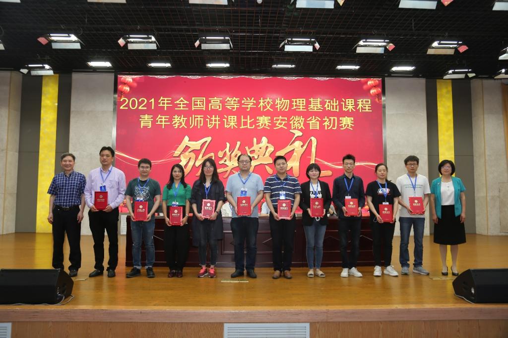 为进一步激发和鼓励青年教师投身物理基础教学、提升教学水平、交流教学经验,提高人才培养质量,教育部高等学校大学物理课程教学指导委员会和中国物理学会物理教学委员会按照《全国高等学校物理基础课程青年教师讲课比赛实施方案(试行)》联合举办 “2021年全国高等学校物理基础课程青年教师讲课比赛”。安徽省初赛由教育部大学物理课程教学指导委员会安徽工作委员会和安徽省物理学会共同主办,由安徽师范大学承办,于2021年5月13-15日在芜湖举行。 2021年大学物理课的比赛内容涵盖2010版《理工科类大学物理程教学基本要求》中的A类知识点。参赛教师根据抽签的先后顺序以及自选的讲课比赛内容进行初赛,讲课时间为25分钟,主要讲授大学物理的基本概念、基本定律和定理及其应用等,可以根据教学需要穿插物理学史等背景知识。我校参赛教师韩玉龙授课内容为《衍射光栅及光栅光谱》,赛前对授课课件进行精心设计,授课内容多次排练,最终在5月14日上午的比赛中以小组第三的名次获得二等奖。(现场颁奖) 本次比赛为青年教师提