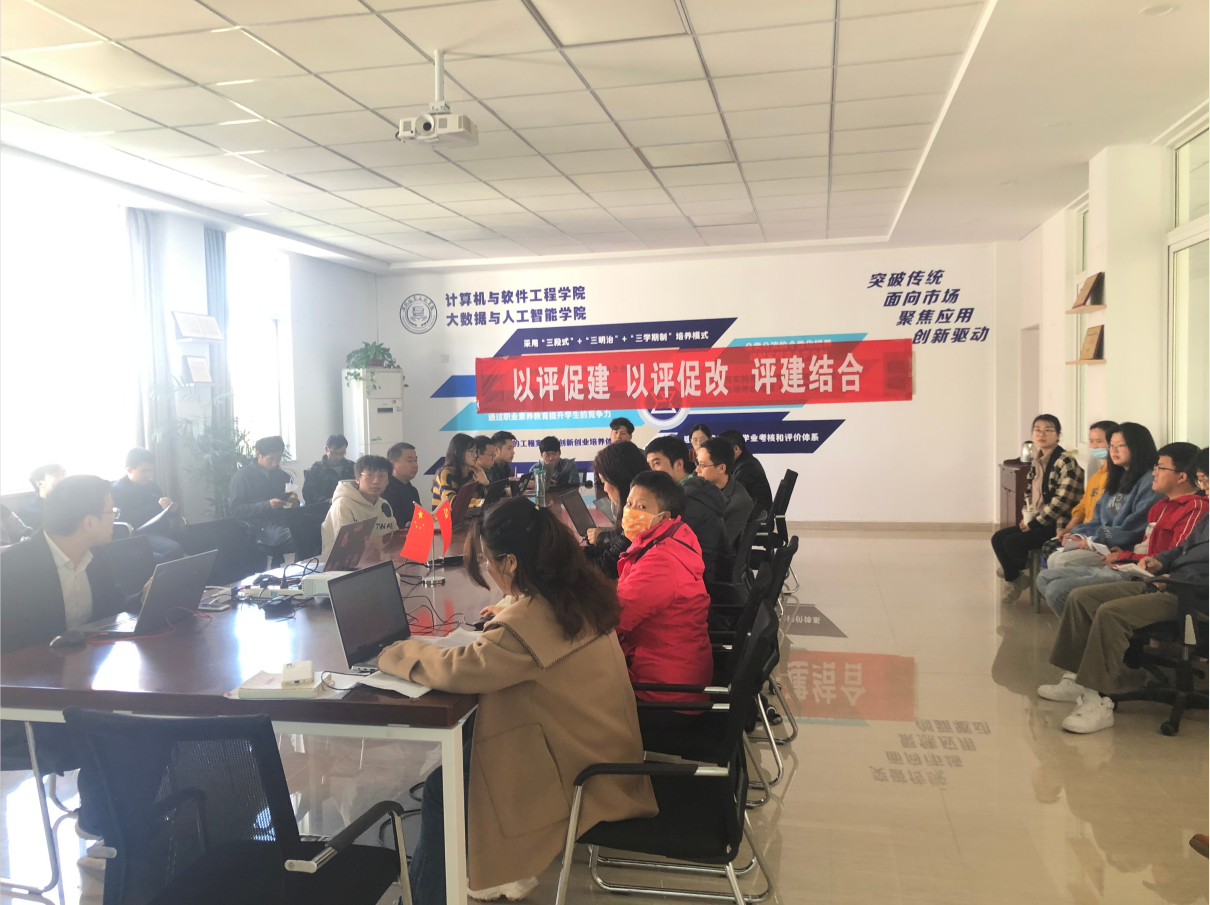为切实找准学校考试工作中存在的问题,为课程建设、课程标准修订、考试大纲制订等工作找准方向和突破口,推动“以评促建、以评促改、评建结合”工作顺利进行,2021年4月9日下午14:30,计算机与软件工程学院(大数据与人工智能学院)于东一210召开有关试卷检查的专项培训会。会议由副院长万家山主持,教学管理团队、各教研室负责人以及部分教师、驻校工程师均参加了本次会议。(图为会议现场)会议开始,李京阳就往年试卷出现的共性问题,提出检查意见,并从整改目标、整改措施、工作要求等几个方面做了介绍。同时向各位老师宣贯针对此次试卷检查工作制定的时刻表,希望老师们在按时、保质的完成专项检查工作。教学管理团队将根据试卷检查时刻表,跟踪各项工作计划的落实情况。 (图为李京阳发言)随后,万家山针对试卷检查的各个维度进行详细说明,从课程小结、题型题量、试卷分析常见问题、学生答卷批改等方面出发,规范每个步骤;并强调专项检查是落实本科教学合格评估整改工作的依据,也是学院的一项重要工作,更是加强学院教学质量评价体系建设的具