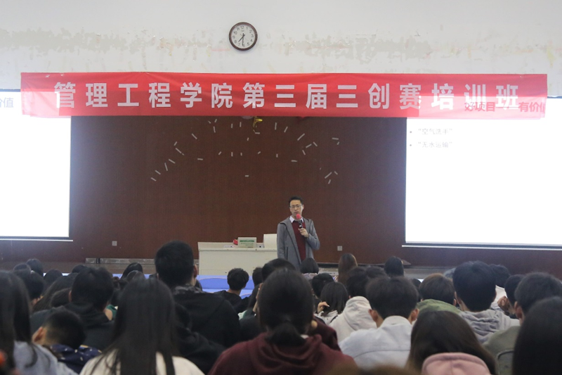 全国大学生电子商务“创新、创意、创业”挑战赛极大地促进了大学生的创业兴趣与潜能,培养了大学生创新意识、创意思维、创业能力以及团队协同实践能力。为了培养学生参赛意识和提高参赛能力,管理工程学院第三届“三创”大赛培训班于2021年3月30日晚在博雅楼W101正式拉开序幕。本次培训班邀请管理工程学院张中英老师担任主讲嘉宾。 首先,张中英结合自己的比赛指导经验综合分析了参赛流程与参赛要求,详细介绍了三创赛的情况。接着,他从创意角度,例举了学生自主创新、教师学生科技成果转化、产教融合创新等多个项目来源。随后,从大赛评审规则、获奖项目特点以及项目计划书的撰写三个方面,给编写创新创业计划书提出了建议。讲座过程中,张中英整理了比赛中同学们可能遇到的常见问题,其中包括项目选择、项目计划书规范化、项目计划书分析和论证,对于如何制作这个商业计划书从项目概要、产品与服务、市场分析及定位、商业模式、营销策略、团队介绍、组织管理、财务计划与分析、风险控制九个方面进行了详尽的分析,让场下的同学们意识到,一个好的