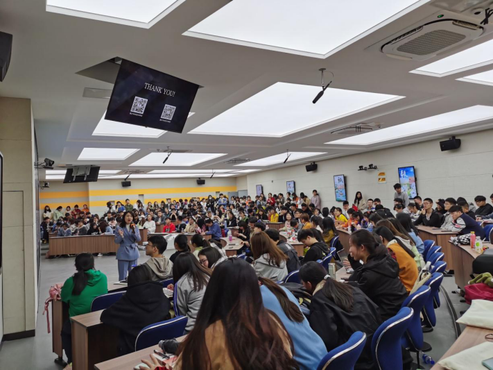 2021年3月30日晚7:00,北京外国语大学中国外语测评中心的王璐艳老师应邀在新芜校区博学楼W301教室,为我校学子做了“立足实际、学以致用、“职”通未来”的国际人才英语主题讲座。讲座由通识教育与外国语学院副院长胡叶婷主持,国才考试指导老师祁亚伟、仰晶晶等专职教师和我校各学院近900名学生共同参加了讲座。由于报名人数众多,讲座安排了1个主会场和3个联动分会场,现场气氛热烈。(讲座主会场座无虚席) 讲座伊始,王璐艳老师进行一个小小的破冰游戏从而打开同学们的思维。接着,王璐艳老师切入主题,从国际人才能力和职业需求的角度出发,结合现代企业对国际英语人才的需求及专业素养要求,为同学们分析解读大学生成为复合型人才所需的职场(英语)能力和技能。她强调在就业形势严峻的情境下,个人多一项技能就意味着多一份优势,而通晓国际规则,熟练运用外语,精通中外谈判和沟通的国际人才无疑具有独特的优势。(主讲嘉宾王璐艳老师介绍讲座主题) 随后,王璐艳老师对国际人才考试进行了全方位解读,帮助同学们全