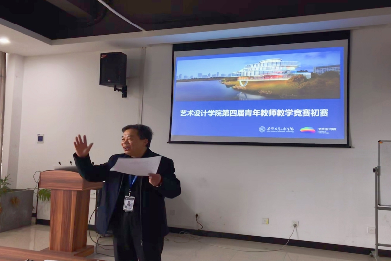 为推动教学创新,打造一流课程,形成卓越教学的价值追求和自觉行动,全力推进教学质量革命,打造我院践行一流教学改革的风向标。3月17日下午,艺术设计学院在学院会议室举行了第四届青年教师教学竞赛暨教师教学创新竞赛,竞赛由执行院长袁立庠主持,副院长兼创促中心主任周建、院长助理钱琳、艺术设计基础兼美育教研室主任班石、视觉传达专业教研室副主任赵虹出席并担任评委。 竞赛伊始,执行院长袁立庠发表讲话,他强调,教学竞赛对青年教师教学水平提高有着很大的帮助。青年教师在参加教学竞赛的准备和比赛过程中,达到锻炼自己和展示自我的目的,从而有利于提高自身的教学素质和教学水平,也对推动学院教学的发展具有促进作用。(图为执行院长袁立庠发表讲话) 本次竞赛分两个阶段:网络评审和现场评审,学院共有5个教师团队参赛。竞赛现场,参赛主讲教师结合教学大纲和教学实践,全面说明整门课程的设计思路,突出教学改革与创新,通过精彩纷呈、条理清晰的汇报展示。评委小组现场进行提问交流,并从理念与目标、教学内容、过程与方法、考核与反馈四