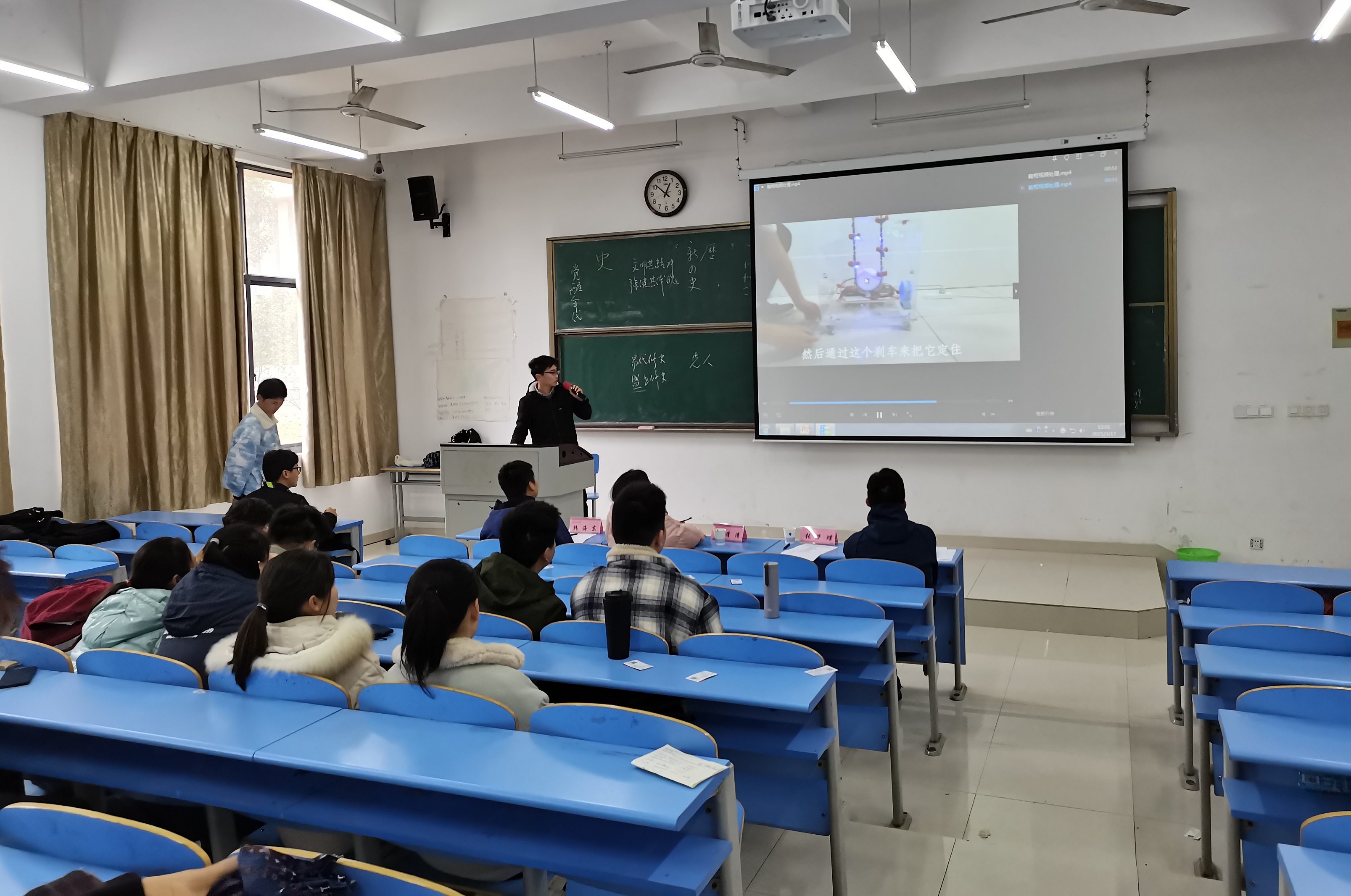 本网讯 3月17日中午12:25,机械工程学院于博雅楼S103教室举办了第九届“挑战杯”安徽省大学生课外学术科技作品竞赛院内预决赛。学院基础教研室副主任王清清、学科竞赛优秀指导老师张继东、学工主管韩海东、团总支书记张梦蝶四位老师出席并担任评委。(主持人介绍比赛评委)350余人次参与了此次比赛,评委组从70余项作品中海选出12项作品进入预决赛,最终推选6支队伍参加学校大赛。比赛过程中,各团队分别从项目背景分析、项目的开发与目的等方面进行了项目展示。评审老师从作品立意、研究方法、申报书填写、创新点等方面给予建议,强调研究要注重纵向与横向对比,突出项目的科学性、先进性;研究成果要用详实的数据说话,量化实验结果;要继续提升作品内涵,切实提高作品质量。 (项目展示环节) 本次选拔赛的顺利举办加强了学院与同学、老师之间的交流,使同学们对“挑战杯”大赛有了更多的信心,同时也让同学们对大赛有了更加深入的了解,相信在学院的大力支持以及师生们的共同努力之下,机械工程学院在“挑战杯”比赛中能取得好成绩。“挑