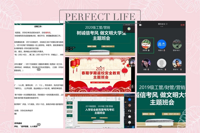 根据新学期返校工作的相关要求,管理工程学院各年级辅导员于2021年3月4日至6日通过腾讯会议组织召开了2021年春季返校安全暨考风考纪教育线上主题班会。各年级辅导员通过ppt形式强调了返校的具体要求及相关安排,就返校后的疫情防控工作及防诈骗、防范校园贷等相关问题作出提醒,提醒学生坚持做好每日健康打卡,保证返校工作的顺利进行。同时,就返校后即将进行的期末考试召开“考风考纪教育”主题班会,对考试时间安排、注意事项、考试违纪的严重后果等内容进行了讲解,并强调务必充分做好迎考准备,用实际行动营造“诚信考试光荣,违纪作弊可耻”的考试氛围,为管理工程学院塑造清新的诚信考试之风!接着,辅导员就返校后的其他工作进行详细梳理,保证返校后所有学子能够及时调整好心态,以更为饱满的热情、更加向上的精神投入到新学期的学业中去,以良好的状态迎接新学期的到来!会议最后,辅导员们对学校今年的重要工作之一——迎接教育部本科教学工作合格评估进行宣贯动员,让同学们深刻认识到合格评估的重大意义,倡导尤其是广大党员、共青团员、学