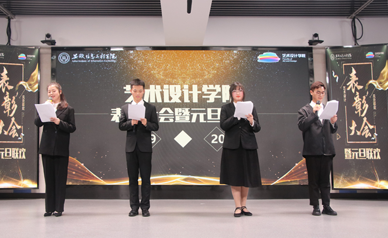 为表彰先进,树立典型,营造良好的学习氛围,同时迎接2021年的到来,艺术设计学院于12月23日下午在A3W401举行了2019-2020学年表彰大会暨2021年元旦联欢。艺术设计学院执行院长袁立庠,副院长叶克军,学工主管金亮,辅导员计杨、陶涛、王路明、梁媛慧、胡亚男以及全体学生代表参加了本次大会。(图为表彰大会现场)大会伊始由袁立庠致辞,袁院长首先对受表彰的优秀个人与团体表示热烈祝贺,并对同学们提出了殷切的希望,希望同学们不骄不躁,再接再厉。大会以“团员风采·志愿奉献”、“先进个人·以身作则”、“学风先进·品学兼优”、“学科竞赛·各显风采”四个篇章为主题分别对获奖团体和个人进行表彰,并颁发荣誉证书。各年级学生代表也奉献了精彩的歌舞节目,大会现场气氛热烈,高潮不断。(图为袁立庠院长致开幕词)(图为老师为获奖代表颁发证书)(图为朗诵节目与歌曲串烧)(图为舞蹈《战疫》)(图为参会人员合影留念)本次活动在表彰优秀学生,树立典型榜样的同时也愉悦了同学们的身心。在2021年到来之际,希望艺术设计