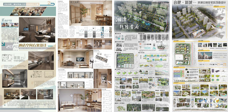 由安徽省教育厅主办的“2020年安徽省大学生环境设计大赛”已于2020年12月中下旬评审结束,艺术设计学院在本次比赛中,获得省级奖励作品共119件。本次大赛由安徽省教育厅主办,是安徽省的高水平专业类赛事,含金量极高。全省共有20多所高校积极参与大赛相互竞争。对于此次比赛,我院相较于往年成绩有了长足进步并获得了突破性的成果数量,更是相较于省内其他院校斩获更多奖项和荣誉。通过本次大赛我院不仅收获丰硕成果,也在我省众多高校之中极大的提升学科专业影响力和院校知名度。本次大赛以环境设计为主题,参赛类别为:景观与规划设计类、室内空间设计类、建筑艺术设计类、公共艺术创作类四个方向。我院参赛学生共获得省级一等奖21件,二等奖32件,三等奖66件的优异成绩,我院学生以扎实的专业知识与技能为根本,以赛促练,以赛促学,全方面多角度的展示了我院参赛学生的专业能力,也让学生在比赛中增强自信,提高专业眼界并获得社会的广泛认可。(图为参赛作品)此次参赛作品不仅体现出了学生的技能水准与丰富的专业知识,也展现指导教师的优