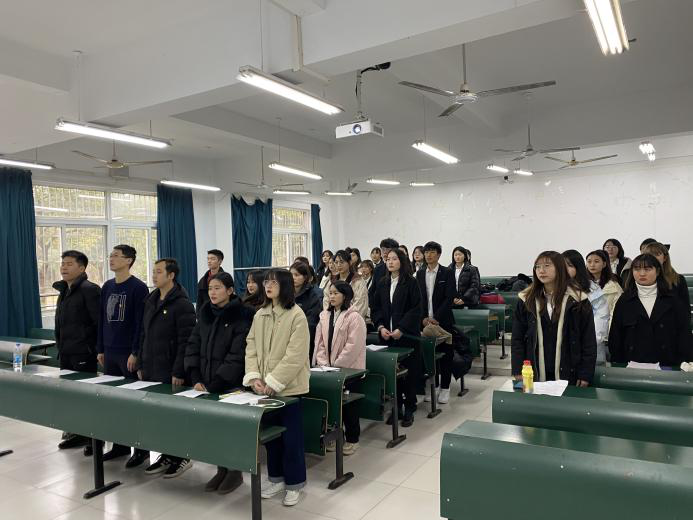 12月13日下午,艺术设计学院学生党支部在文津校区西三教学楼101教室召开预备党员转正大会与发展预备党员大会。大会讨论关于潘雯、邹萍萍、郎广玲、洪双双等12名同志申请转为正式党员以及马骏驰、刘静、丁柔等19名同志发展预备党员发展大会。出席本次转正大会的有艺术设计学院学工主管金亮、学生党支部书记计杨、18级辅导员陶涛、19级辅导员王路明、20级辅导员梁媛慧、胡亚男、艺术术设计学院党支部全体党员、预备党员、发展对象参加了本次会议。会议由学生党支部书记计杨主持。(图为参会人员)首先召开预备党员转正大会,由12名申请转正的同志依次上台汇报预备期一年中的思想、学习、工作以及生活上的感悟、收获及表现等情况。即陈述了自己优秀的地方,也认识到自己的不足,并且表明成为一名正式党员后,将不断地改善自身、提升自我。然后由学生党支部成员分别对其作出评价,说明该同志在这一年预备期内的优缺点,还有待改善和提高的地方,并表达是否建议其转为正式党员。由支部成员进行投票,投票结果是12名待转正同志全部顺利通过。(图为预备