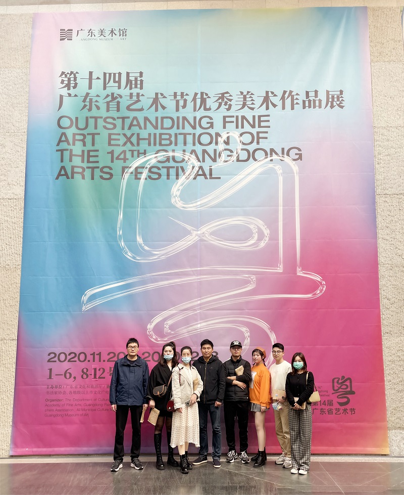 为深化产教研融合,培养高素质应用型人才,提高教师专业素养,12月2日由艺术设计学院副院长周建带队,一行八位老师共赴广州考察。 考察期间,教师首先参观了第十四届广东省艺术节优秀美术作品展。广东省艺术节是广东省规模最大、规格最高、最具专业性的艺术盛会。本次参展作品紧扣经济特区建立40周年、决胜全面建成小康社会、中华人民共和国成立70周年、中国共产党成立100周年等重大主题,生动刻画和反映时代的前进步伐、生活的发展变迁和人民昂扬奋进的精神风貌。12月4日,教师参加了广州国际设计周,广州国际设计周是中国目前规模最大、参与人数最多、影响力最广、国际化程度最高的“设计+选材”(D+B,Design+Brands)博览会。(图为八位教师在广东美术馆前合影) 此次考察,不仅为教研团队带来了一场视觉盛宴,拓宽了视野,也让教研团队更深层次的体会到产品的进步与科技的快速发展。接触的各种设计、教学理念给教研团队提供了全新的观点释放和平台交流的契机,进一步提高了教师的专业素养和教学水平。(图为艺术节部分优秀作