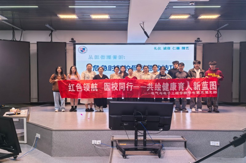 为增强学生健康安全意识,普及骨科急救知识,提高应对突发意外伤害的能力,电气与电子工程学院学生党支部联合芜湖市第二人民医院于4月25日下午在A3W401成功举办了《从扭伤到骨折:危机时刻的骨科急救技巧》专题讲座。本次讲座特邀芜湖市第二人名医院骨科主任护师许丽莉担任主讲。(图为专题讲座)讲座中,许丽莉采用"理论讲解+实操演示"的形式,系统讲解了常见运动损伤的识别与处理。针对扭伤、拉伤等软组织损伤,重点介绍了"RICE"急救原则(休息、冰敷、加压包扎、抬高患肢),并现场演示了弹性绷带的正确包扎方法。在骨折急救环节,通过真实案例,强调了"制动固定"的重要性,指导现场学生利用身边物品制作简易夹板,同时特别提醒"切勿自行复位"的急救禁忌。为增强学习效果,讲座设置了丰富的互动环节。在许丽莉的指导下,现场学生分组练习了前臂骨折的夹板固定、踝关节扭伤的加压包扎等实用技能。(图为现场演示)本次讲座是电气与电子工程学院学生党支部与芜湖市第二人民医院支部共建后开展的志愿系列活动,是落实高校与医院“共抓基层党建、