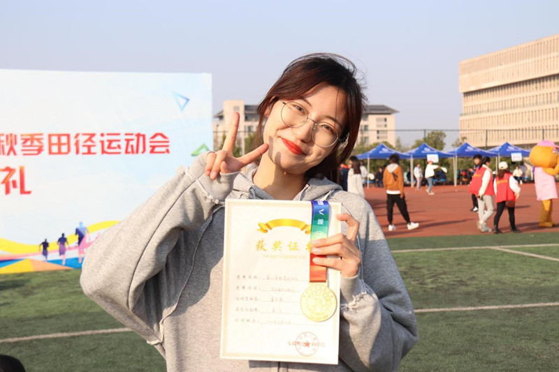 矫健的身影,飞奔的身姿,一道道亮丽的风景线,11月13日,在安徽信息工程学院第八届运动会上,计算机和大数据学院运动员们在新芜校区绿茵场上大展运动风采,创下了多个项目比赛新记录,演绎了多彩的健美人生。(图为女子跳远比赛冠军童艾琪)好似猛虎跳闸,在跳远比赛中奋力一跃的智科1902班童艾琪就此创下了信工历史新高记录,获得了女子跳远比赛第一名。根据童艾琪描述,在她小学和初中的时候都通过了校内选拔并进入校队,参加了很多的比赛,以往丰富的比赛经验为童艾琪比赛中一举夺冠并创下了令人骄傲的新高记录打下了基础。当记者问道最想和谁分享这次成功的时候,童艾琪说:“比完赛后,公布成绩的那一刻,心里最想和父母分享这份获奖的喜悦,这份荣耀,不仅是自己的,更来自父母从小对我的培养和支持,很感谢父母亲的呵护关爱。”赛场上犹如猛虎的童艾琪心怀感恩,让这份荣誉显得格外耀眼。(图为跳高比赛颁奖现场(中)张文聪)在男子跳高比赛中,大数据1901班的运动健将张文聪喜获跳高总决赛冠军,记者问道有何获奖感想时,张文聪说:“很开心在本