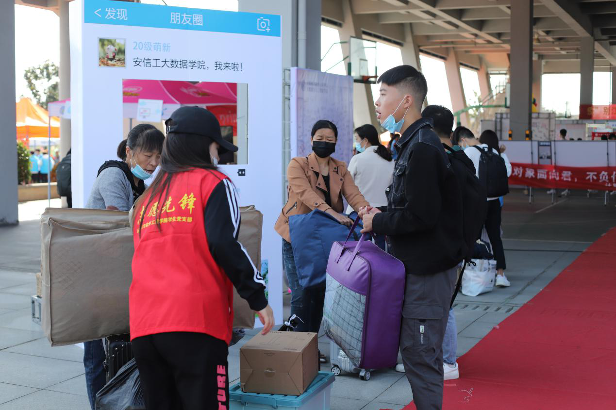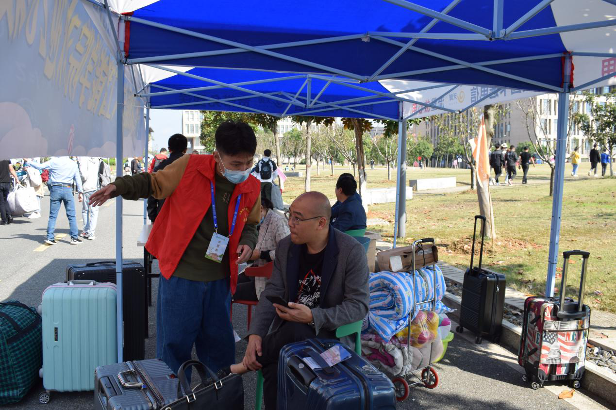伴随10月桂花的飘香,2020级迎新工作已经正式拉开帷幕。计算机与大数据学院各专业的辅导员带领志愿者们早早在新生报道处等候,同往年一样,我们在校门口迎接来自全国各地的学弟学妹,他们背着行囊、怀揣理想来到这个让梦成长的地方。对于辅导员们来说,迎新更像一次洗礼,是一次对体力和脑力的双重考验。他们耐心的解答入学问题,让新生同学和家长们感受到学院大家庭的热情和温暖,同时,他们也用实际行动让家长对学校多了一份信任,让新生对未来四年的大学生活多了一份憧憬。(图片马越老师为新生办理入学手续)“这是我第一次担任辅导员参加迎新工作,尽管提前花了很长的时间进行准备,迎新工作量很大、很辛苦,但当看到新生同学们一张张稚嫩的脸庞,便感觉一切都很值得,所有的疲倦也随之烟消云散。”计算机科学与技术(专升本)辅导员马越老师在接受采访时这样说到。新来的辅导员们表示第一次迎新就是慌乱并充实、忙碌并快乐。2020级辅导员汤菲菲老师在接受采访时表示,希望新生们可以尽快的融入大学生活,当他们踏入大学校门的时候,便是梦想启航的时刻