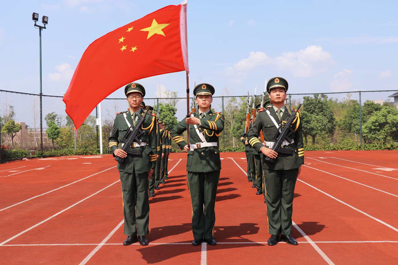 本网讯 喜迎国庆周年盛典,举国同庆盛世佳节。在这举国欢庆新中国成立七十一周年与中秋佳节的时刻,2020年9月28日,安徽信息工程学院国旗护卫队举办迎国庆爱国主义教育系列活动,用他们的实际行动抒发爱国情怀,共祝祖国更加繁荣富强。28日清晨,我校国旗护卫队全体成员排列整齐准时在操场集结完毕,迎国庆升旗仪式正式开始。只见他们身着笔挺的军绿色制服,排着整齐划一的队列,迈着矫健的步伐,饱含对祖国无限的热爱护送国旗入场。伴随着国歌的响起,全体人员面向国旗行注目礼,现场秩序庄严肃穆,鲜艳的五星红旗冉冉升起在安信工校园的上空。 (图为国旗护卫队护送国旗入场) (图为国旗护卫队护送国旗入场) (图为升旗仪式正式开始)升旗仪式结束后,国护队全体成员来到A2E101教室,开展爱国主义精神宣讲会。此次大会由“忆往昔”、“看今朝”、“展未来”三大主题构成。忆往昔,国护队通过观看《决胜时刻》爱国主义历史电影,回溯新中国成立的初心和使命,学习新中国缔造者们鞠躬尽瘁的大无畏精神 ;看今朝,国护队通过演讲形式,畅谈新中国