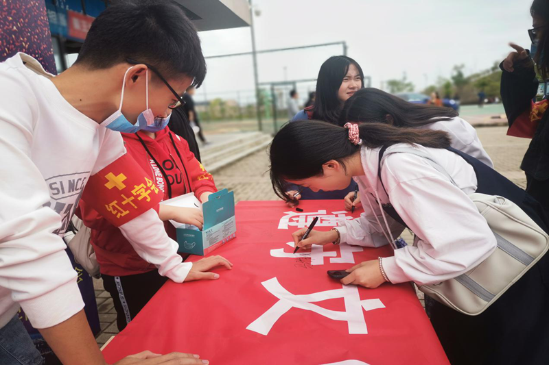 本网讯 为坚决贯彻落实党中央关于疫情防控相关部署,坚持人物同防、多病共防,精准防控。2020年9月23日,安徽信息工程学院红十字会志愿者们于新芜校区陶然餐厅门口开展防疫宣传志愿服务活动。 (图为红十字会志愿者向学生介绍卫生防疫知识) (图为活动现场卫生防疫宣传展板)活动开始前,红十字会成员早早来到活动现场进行布置,为活动做好了充足的准备。中午放学后,活动正式开始,红十字会成员抓住人流量高峰期,通过宣传海报、悬挂横幅、发放口罩、防疫劝导等形式,向同学们介绍卫生防疫的注意事项。在活动过程中,同学们积极参与,现场人头攒动,在宣传劝导过程中,同学们都自觉的戴上口罩,纷纷表示要积极配合学校的防疫工作,现场有很多同学主动加入到活动中,帮助志愿者们一起宣传防疫知识。最后,同学们一起在横幅上签名,为疫情防控助力,进一步提升疫情防控宣传的影响力。(图为同学们在横幅上签字)本次防疫宣传活动,志愿者们坚决落实习近平总书记关于科学精准疫情防控的指示,通过开展卫生防疫宣传活动,进一步增强了卫生防疫意识,提高了自我