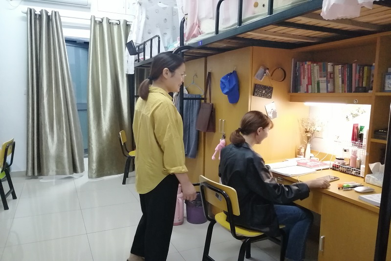 随着九月开学季的到来,管理工程学院恢复了以往的正常教学,但我们也不曾忘记对疫情的防控。对于学生而言,最经常出现的地方一定是教室与寝室。因此,对生活起居环境的卫生把控一定要高标准,严要求。疫情防控:防胜于治 时刻警惕在这个特殊的时期返校,更应该注意起居环境的疫情防控。所以,我们要严格遵守日常的宿舍通风消毒,以及宿舍成员自身卫生的要求,让疫情的蔓延无可乘之机。严格要求,也体现了学校对学生安全的重视。碎碎念,查宿舍,还不是因为爱!9月21日晚22:00,管理工程学院院长助理于凤,学工主管邓辰、全体辅导员老师至A20,A37学生宿舍进行走访。了解同学们的学习、生活情况,对宿舍安全卫生、寝室风貌等方面进行叮嘱和督促。(于凤与学生亲切交谈)惟吾德馨:修身齐家治国平天下先修其身而后齐家,再以治国平天下。作为当代大学生,正处于即将步入社会的时期,正处于风华正茂的时候,更要抓紧机会,自修其身。学生及学生寝室的风貌反映了学院、学校的风貌。学生宿舍作为学生的重要生活场所,不仅要加强宿舍条件、卫生等硬环境的打造