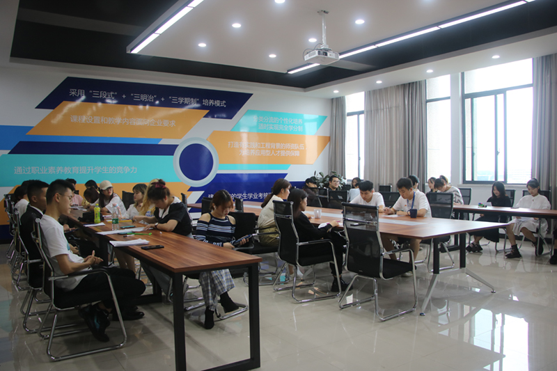 为确保新学期开学后各项学生工作顺利开展,学生处于9月7日至15日期间,开展二级学院学生工作走访、调研活动。副校长葛付才、学生处处长吴晓及学生处思政、学生管理及团委业务主管组成走访调研组,各学院的分管领导、学工秘书、全体辅导员参加调研座谈。 (各学院调研现场)调研内容主要围绕对学生返校情况的了解、对学生返校后日常管理情况的落实、对学风建设与素质养成工作的思考与计划、对新入职辅导员指导与培养、对需要学校协助解决的问题等五个方面展开。各学院认真准备,对调研内容进行了详细汇报。在听取学院汇报后,调研组就上述内容以及近期重点工作等方面与参会人员进行讨论和交流,对相关问题进行指导、答疑。 座谈最后,葛付才副校长提出两方面要求:一是对学院学工管理团队,要求学院根据学校整体工作方案,结合学院实际,做好新学期学生工作的思考与设计,做实做细学生工作,加强对新入职辅导员的帮扶与指导,与学校一起做好新入职辅导员的培训培养工作;二是对全体辅导员提出要求,学校重视辅导员队伍的建设与发展,学工团队也得到进一步配齐配