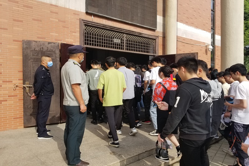 9月19日,2020年上半年全国大学英语四、六级考试在我校两校区同步举行,为全面保障此生此考试安全稳定、考试顺利进行,保卫处组织物业安保部及学校警务室对大学英语四、六级考试现场进行安全保障。 此次考试保障保卫处精心准备,在学校的统一部署下,组织物业安保人员对考场教学楼进行封闭,并在考场教学楼外设置警戒线,加强晚间校园巡查。为确保考场消防安全,保卫处提前对考场内消防设施进行检查,消除安全隐患。考试当日,保卫处、学校警务站及物业安保人员提前到岗,在考点入口处执勤进行现场管理,对进楼人员的证件进行核查,禁止与考试无关人员进出考点,加大校园机动车辆临时管制;结合本年度2016级毕业生返校考试的特殊性,特设置校门口防疫检查组,通过扫码健康码、人脸识别、测量体温、发放临时“通行牌”凭证出入,并在考生入场及离场期间加强秩序维护工作,确保毕业生有序离校。在考试期间加强考场外围的巡逻频次,随时做好处置突发事件的应对准备。(图为考试现场安全保障) 此次考试在物业安保部、学校警务站的密切配合下,过程平