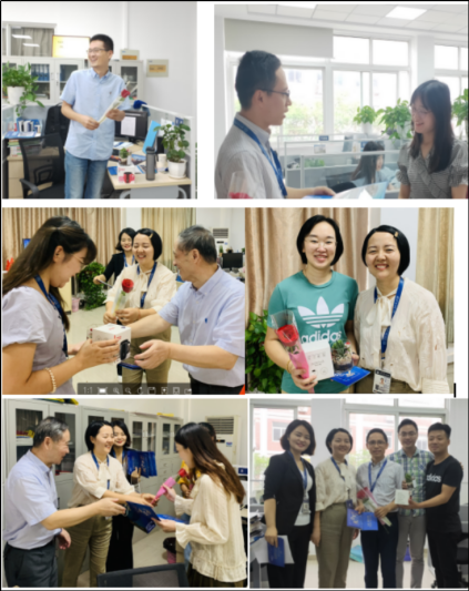 倾尽丹心育桃李,奉献韶华铸师魂。9月10日上午,计算机(大数据)学院以各种活动形式向老师们表达了节日的祝贺。一、鲜花表心意此次教师节来临之际,计算机(大数据)学院为全体教职工准备了鲜花和爱心盆栽。每一支鲜花、每一抹绿色都承载着学院对老师们的感恩和关心。收到盆栽和鲜花的老师们面露喜悦的笑容,表达了对学院的感激之情。 (图为学院教职工收到鲜花和爱心盆栽留影) 二、贺卡送祝福教师节这一天,全体教师均收到学院行政团队定制的贺卡,贺卡封面上印制“教师节快乐”和“老师,您辛苦了”的字样,表达了学院对每一位老师的祝愿和慰问。打开贺卡,计算机(大数据)学院2020年教师节全体教职工的身影,记录着学院发展中每一位教职工入职以来在面对压力、委屈、诱惑时仍选择坚定地与学院站在一起的奉献精神!因为有你,心存感激!(图为学院为教职工定制的贺卡)三、行动表敬意2020年9月10日,计算机(大数据)学院院长周鸣争、副院长戴平、万家山,院长助理夏林一行,带着学院精心制作的节日礼物看望慰问学院全体教职工,并向他们致以节日