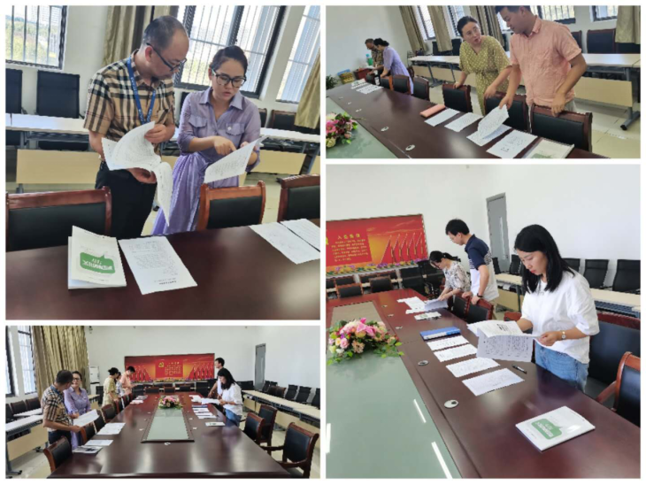 为进一步落实学校“教学过程管理”文件要求,规范教学材料,迎接新学期教学工作,提升教学质量,2020年9月7日上午,通识教育与外国语学院以“自检互检”的方式展开新学期教学基本材料的检查工作。通识教育与外国语学院执行院长刘德胜,院长助理兼素培中心主任陈巧巧,教学秘书黄飞,教务员吴双璇担任此次检查工作并指导。 检查组成员,从宏观层面和微观层面对每位授课教师教学材料进行审查,着重检查了教学材料的“完整性、规范性、合理性” ,对发现的每个细节问题做到现场发现,现场整改。(检查现场)检查结束后,大学生综合素质教研全体教师召开专题工作会议,会上刘院长院长强调,做好教学工作是每位教师工作的基本职责,保障教学质量是每位教师应有责任,有责任就要所有担当,因此,抓好教学过程管理,是提升教学质量的重要环节,全体教师要首先从思想上高度重视,行为上要身体力行规范到位。此外,教学质量不在高处,是在平时教学过程管理的基础上,全体教师要踏踏实实做好每天每节课的教学管理工作,真正从思想上重视,行为上规范,真正做到“抓基础、