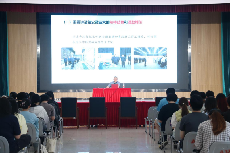 本网讯 为深入贯彻习近平总书记对安徽发展的重要指示,引导学员深刻领会国家战略布局,增强新时代青年学子的使命感与责任感,4月19日,学校党校面向第二十六期党课发展对象培训班及2025年第一期入党积极分子示范培训班学员们举办了以“习近平总书记考察安徽重要讲话精神学习”为主题的专题讲座。此次讲座由湾沚区党校副校长、高级讲师、市委讲师团成员、区委讲师团专家王丽主讲。(图为培训讲座现场)讲座过程中,王丽围绕“Why—重要性”“How—落实举措”“What—核心内涵”三个关键维度,深入解读习近平总书记考察安徽重要讲话精神。他指出“实事求是”是首要思想,强调一切从实际出发,通过调查研究来具体问题具体分析,并总结经验。同时,他提出“知行合一”是关键,知是行之始,行是知之成,只有将知与行在具体问题上紧密结合,才能实现既定目标。讲座过程中,王丽的讲解生动形象,案例丰富,参训学员们全神贯注,认真聆听,积极与主讲人互动交流,现场学习氛围浓厚。(图为王丽授课现场)讲座结束后,学员们纷纷表示,此次培训收获颇丰,不
